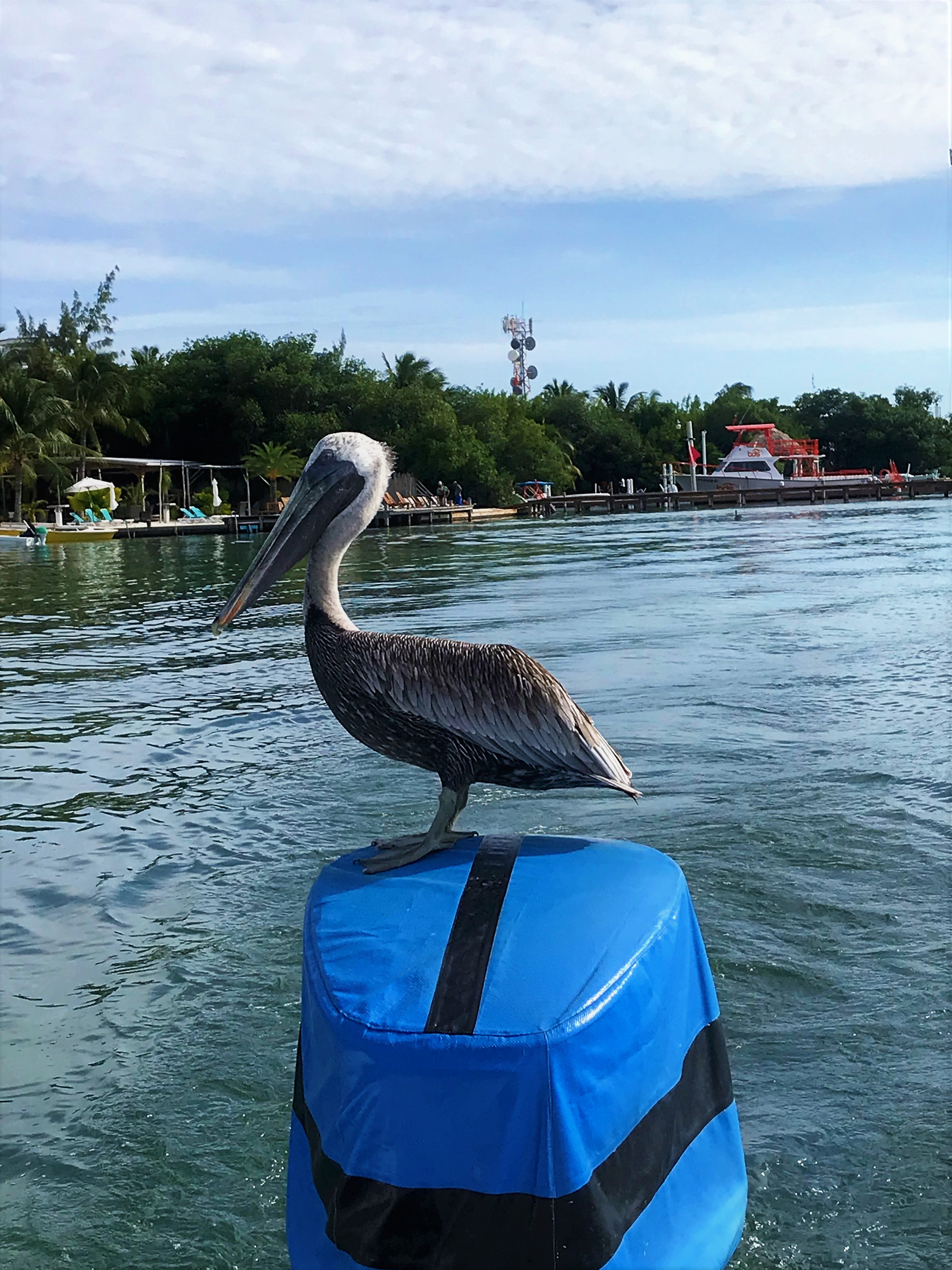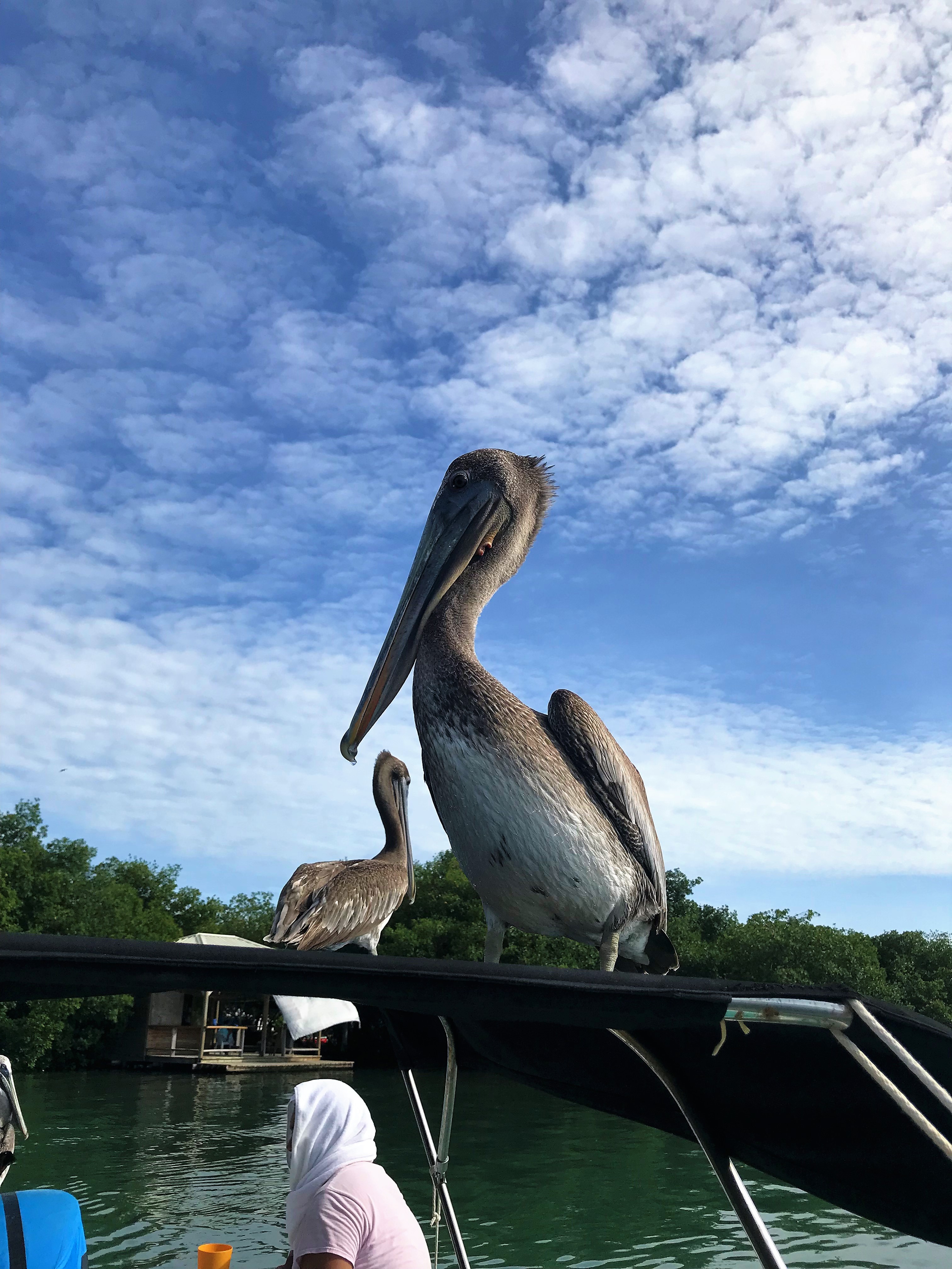 I can only see a couple of tiny ones. And then pelicans…. lots of pelicans swarm the boat. At one point we have 4 on the boat with us. NO food for you today, kids!