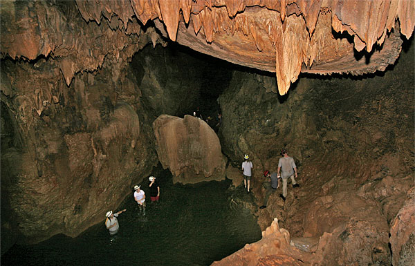 The cave is a dark underworld so those headlamps are a necessity. We stop along the way to have a chat and admire the stalagmites and stalactites that sparkle in the light from our headlamps.