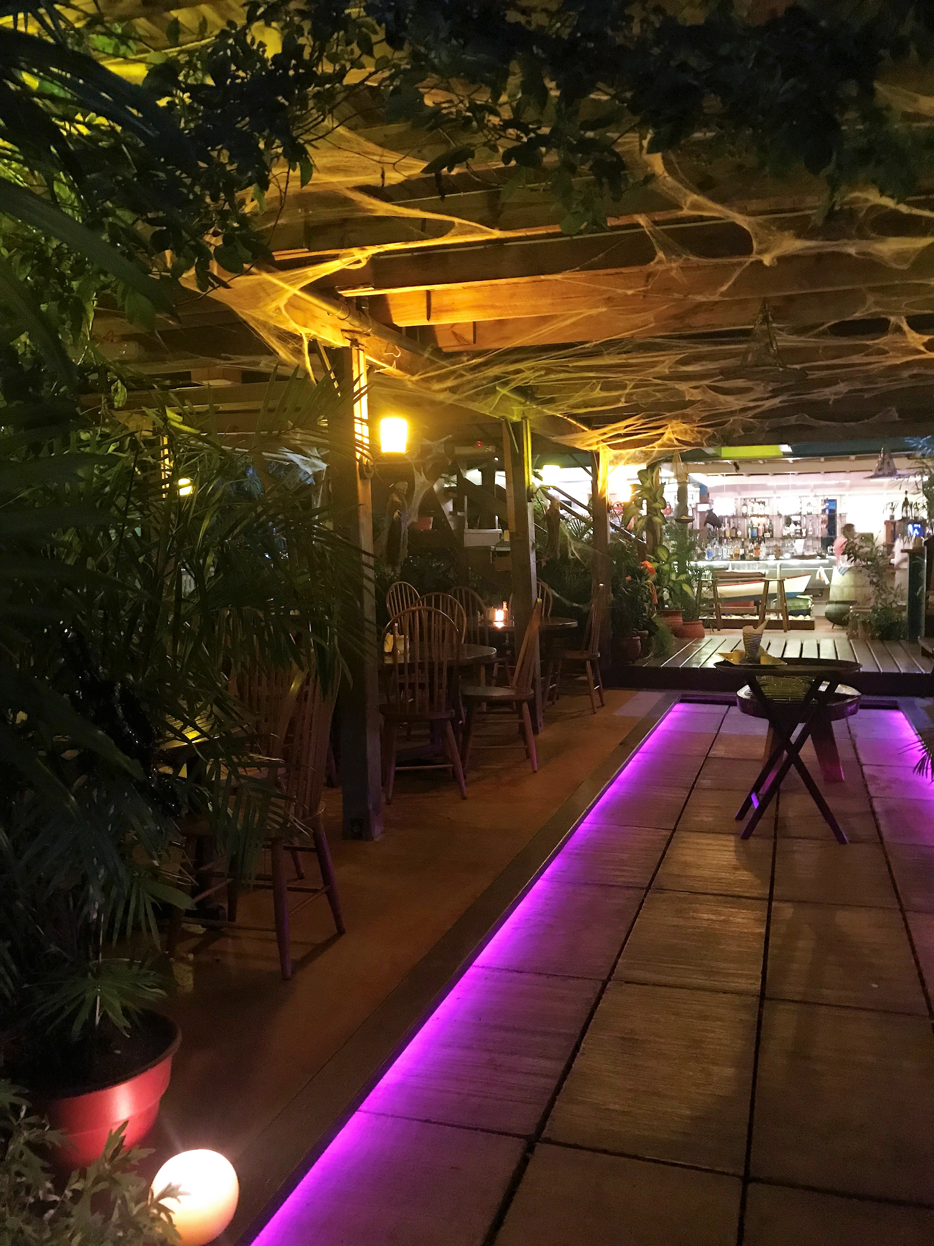 On the way home I stop at a local bakery to try a piece of tres leche cake. It’s a sponge cake that is soaked in 3 different types of milk, with whipped cream on top. It just melts in your mouth! For dinner the group heads out to Guava Limb, which has the reputation of being the best restaurant here in San Ignacio. It is in a turquoise two storey house, and we sit outside in the garden area.