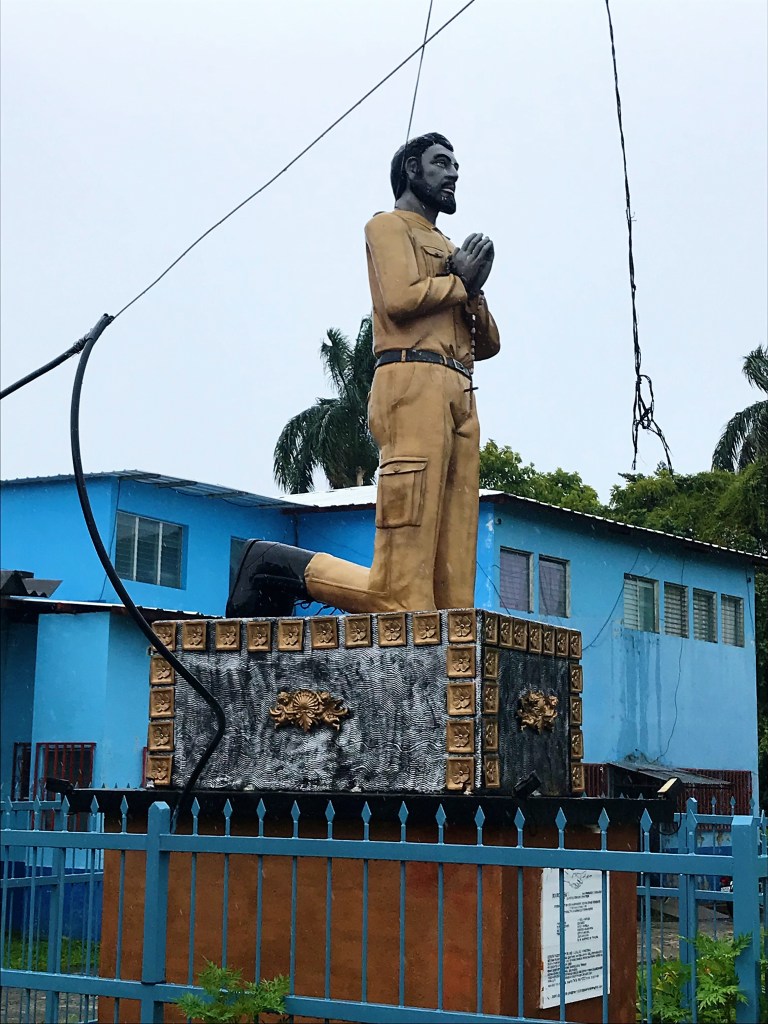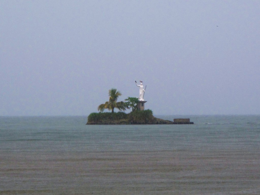 We walk to the beach where we can see an island that houses a giant statue, Salvador del Mundo.