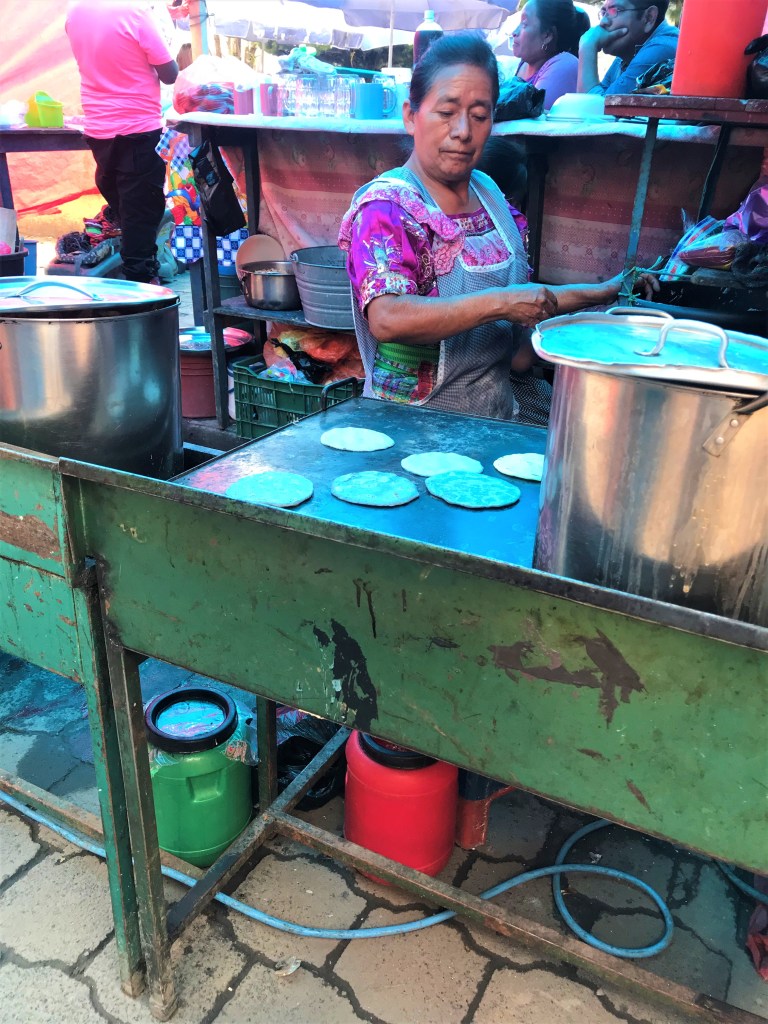 There are ladies making tortillas, the smell of their freshly baked treats wafting through the air.