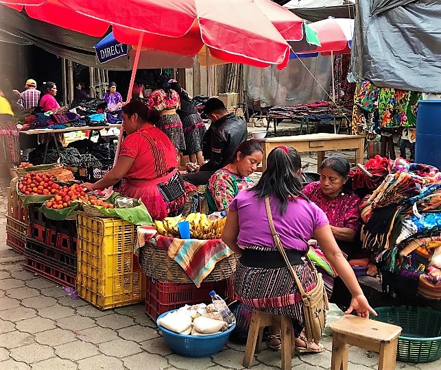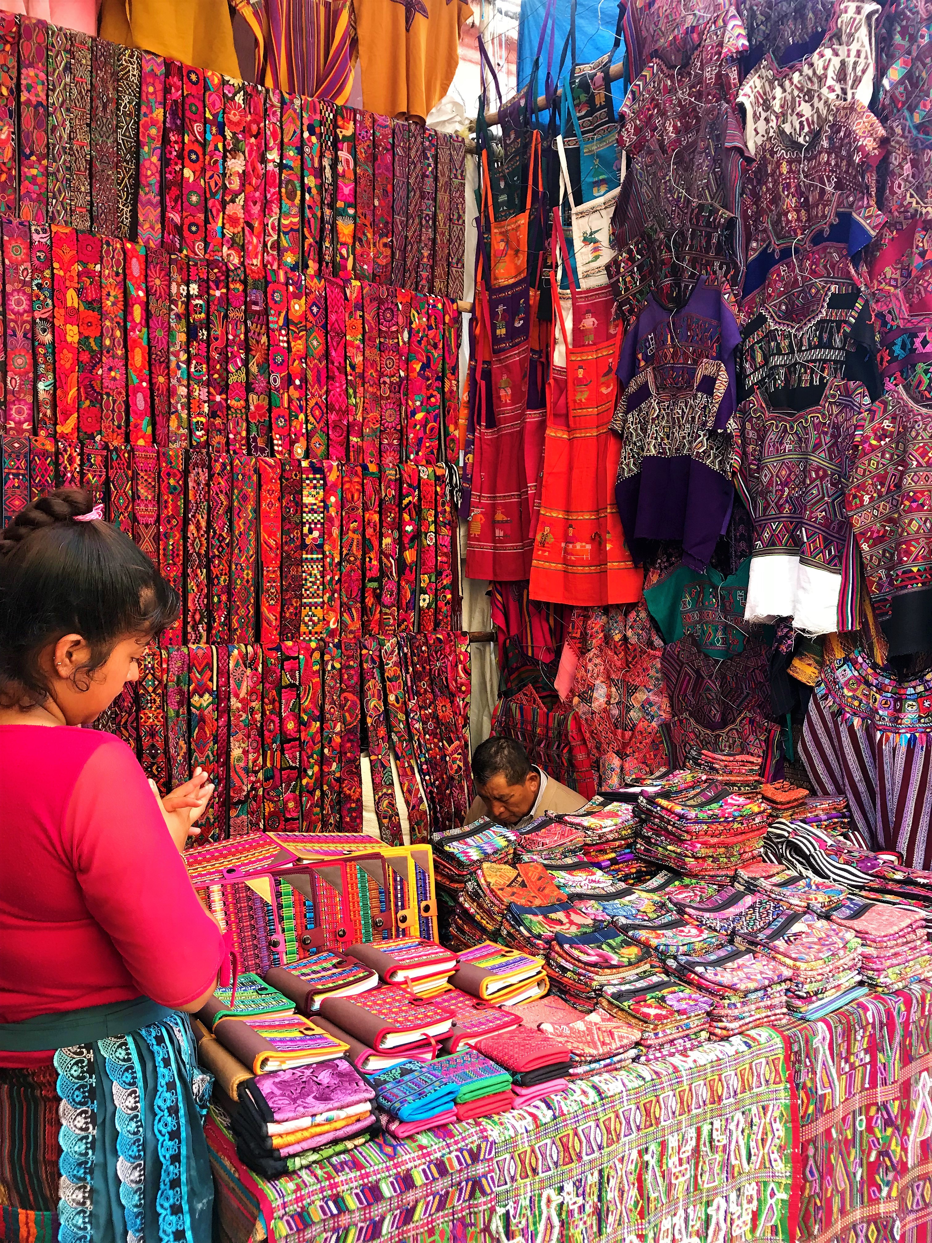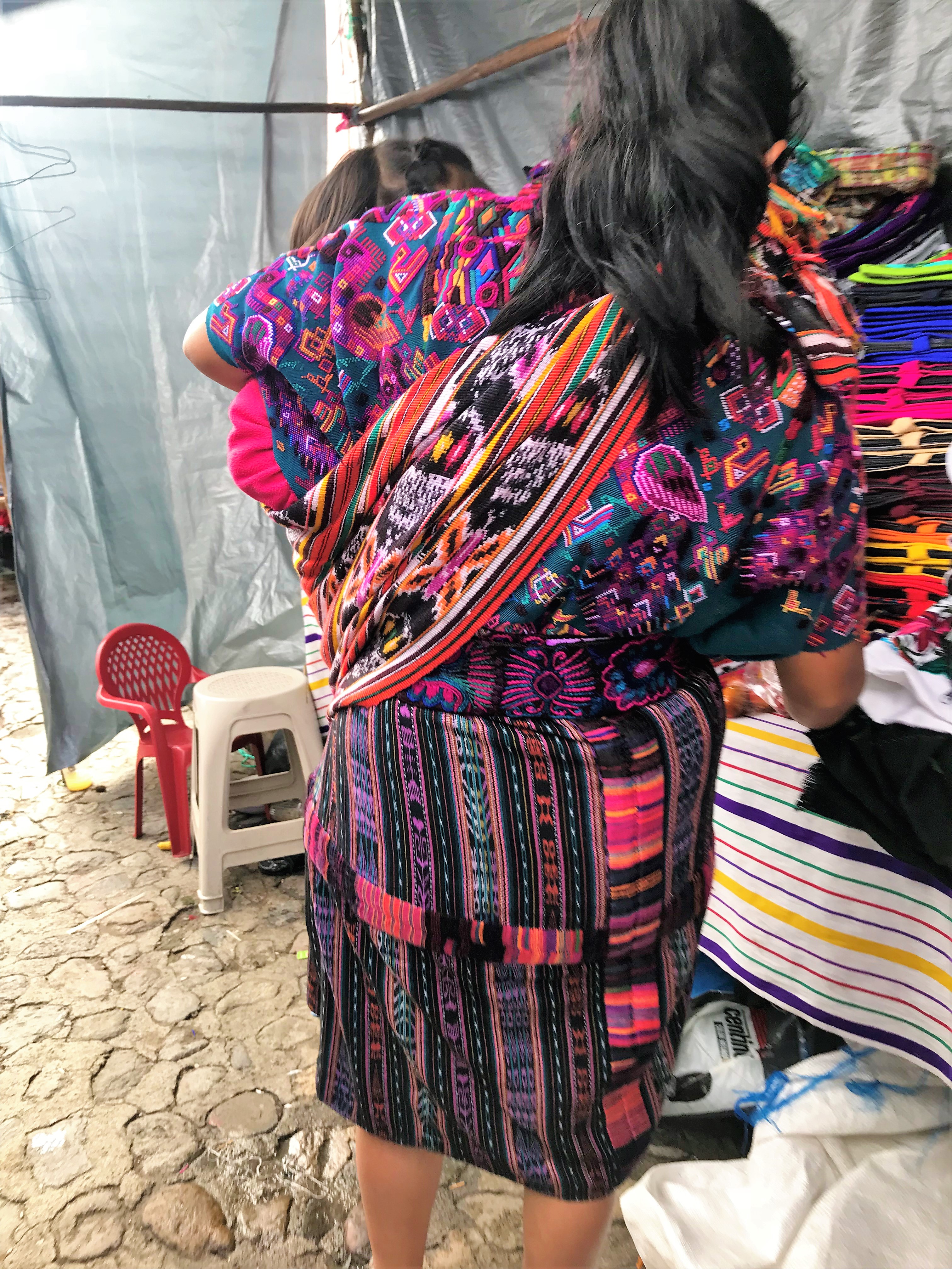 You can find pretty much everything here…but the focus for me today is souvenirs and a gift for the family we are staying with tonight. I don’t need a chicken, thank you. There is one annoying girl trying to sell me pens and she follows us around for what seems like forever. I keep telling her no, but she doesn’t give up! We garner a lot of stares and giggles from the locals (maybe it’s my blue/green hair?) …. I just smile back and wave hello. The colorful textiles on display provide a beautiful sight!