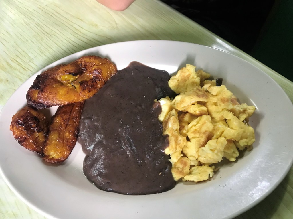 When I return, breakfast is ready…..eggs, black bean mush (not my fave thing), fried plantains, toast and of course…tortillas!