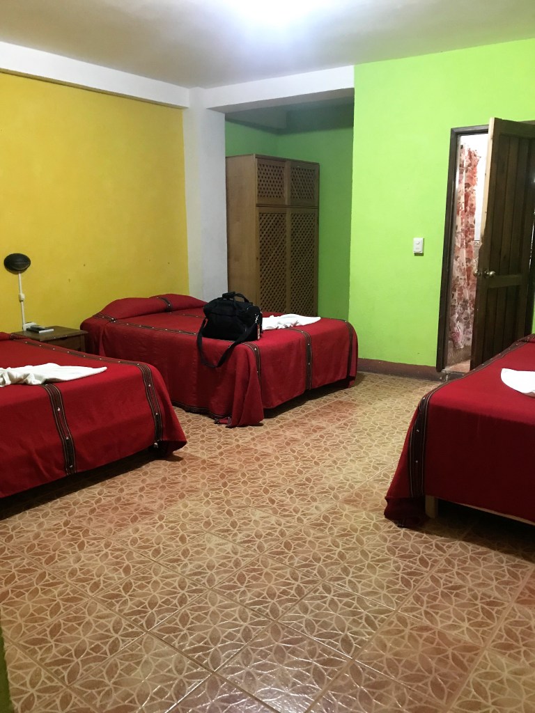 Pedro knows of a place with cheap tequila, so we head over to Hamburguesa Gigante for some shots. It costs $1 for a shot…even though I don’t love tequila, how can I say no to that? We are now joined by Victor, another Intrepid tour leader in town with his group of one (it does happen!). He drags us to this hostel bar that I think is pretty lame and the air is just coated with cigarette smoke. I have one drink but I really just want to leave. Brigitte has also had enough, so we leave the group and end up outside of this cool bar that has a live traditional band and dancing. But sadly, there isn’t enough room for us to go in; we can only enjoy from the outside. We meet up with our group again and head back to Simoneta; this time Victor buys us these flaming shots.