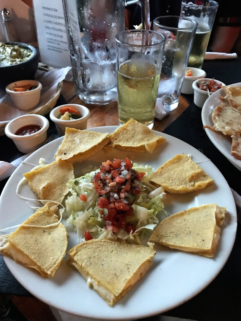 We choose Sunset café, right along the lake in hopes of some great sunset views but it’s way too cloudy to see anything. So, I order a beer and cheesy quesadillas and forget about that sunset.