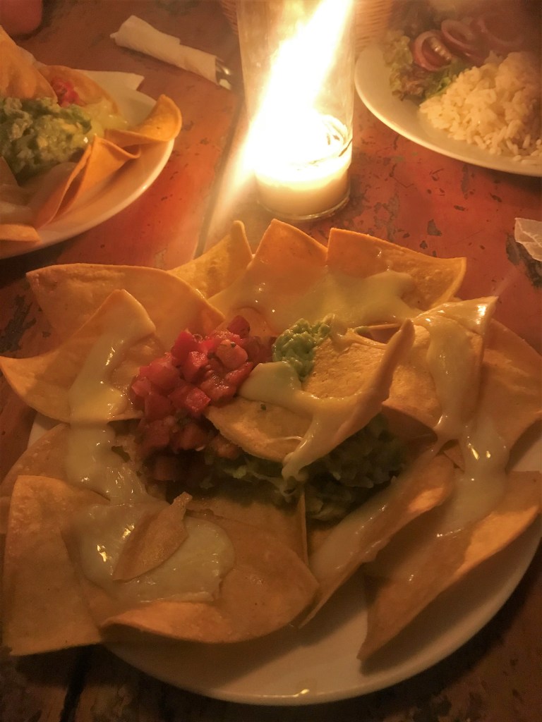 We sit in the open courtyard, enjoying the laid-back atmosphere. Next we end up at Rainbow Café for more drinks and a massive plate of nachos for dinner.