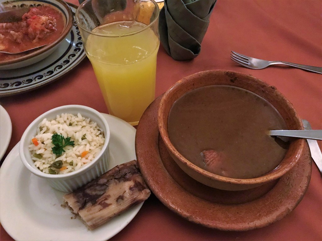 Tonight is the last night we will all dine together as a group so Pedro chooses a fancier place. And also, it is his birthday! The restaurant is La Fonda de la Calle Real. We sit in the open courtyard area; it is quiet and romantic. Ok, as a group we don’t need romance, but I’m just saying it is! Haha. I decide to finally try kak’ik, a traditional Mayan turkey soup, flavored with spices like coriander, garlic, onions and chili peppers.