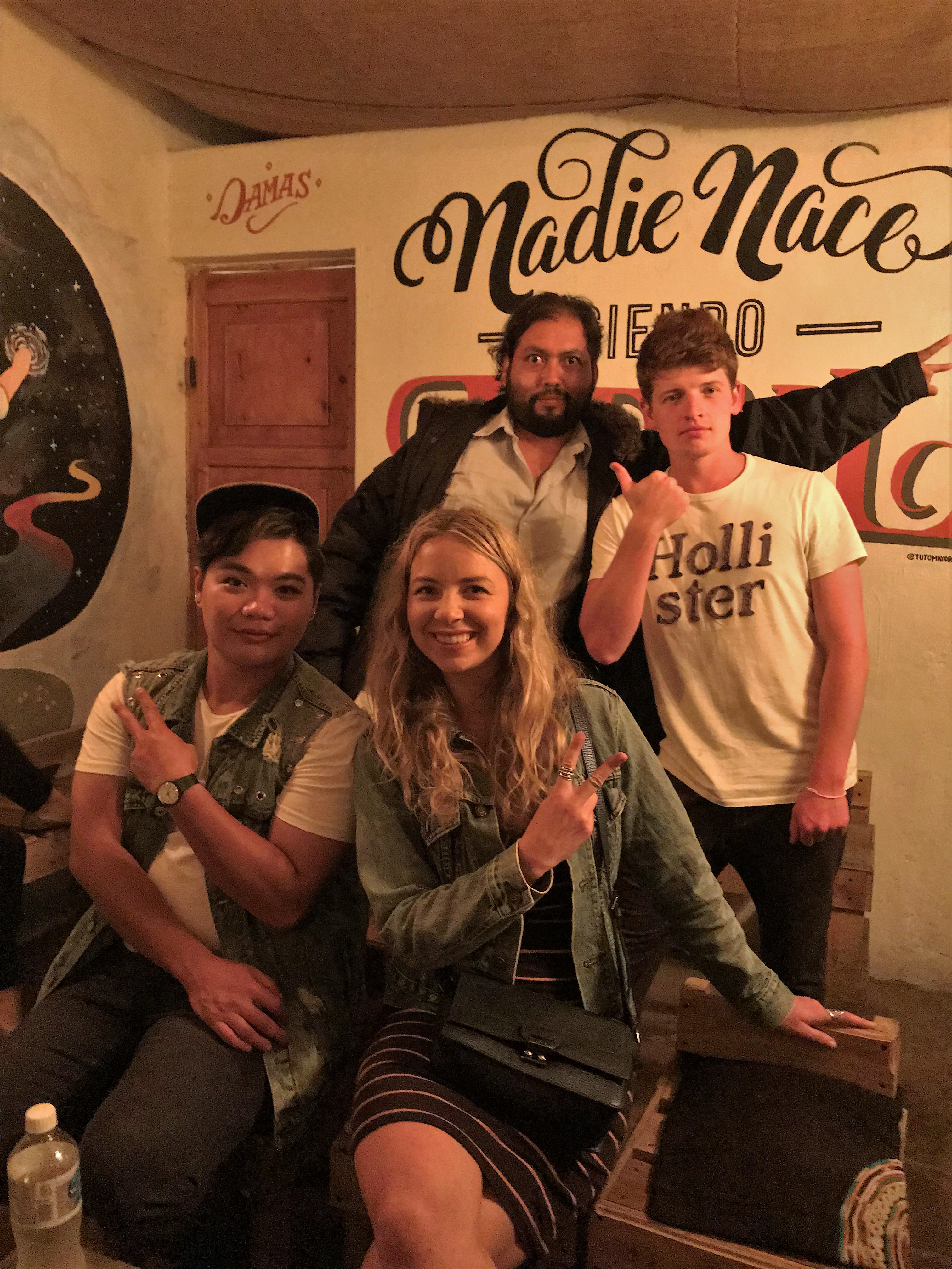 It’s tasty, but I’m not a fan of the cut of meat in the soup. To go alongside the soup, I try a pupusa – a stuffed tortilla and the one I order is stuffed with loroco flower. It also tastes great! After dinner, we head to a place called El Ilegal, a cool trendy little bar that serves cheap beer, happy hour drinks and fun music.