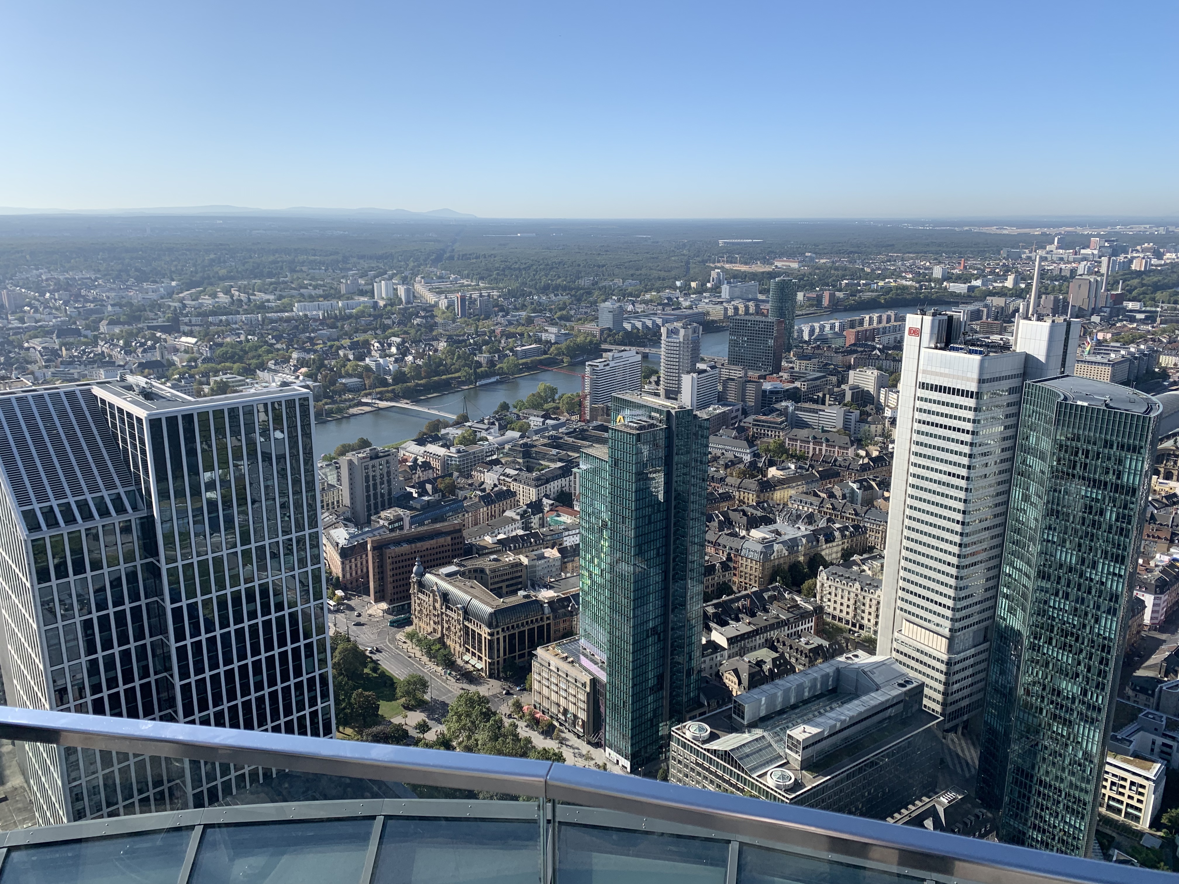 I walk past a few sketchy characters on my way out, and I’m off to see what Frankfurt has to offer. I head down Kaiser Street where authentic 18th century buildings are still standing, amazingly not destroyed in WWII. There are all kinds of shops here – souvenirs, boutiques, cafes and erotic shops (we are close to the red-light district after all!). I pass by a few pretty parks and then take a hard left to get to Main Tower, a popular attraction here in Frankfurt.