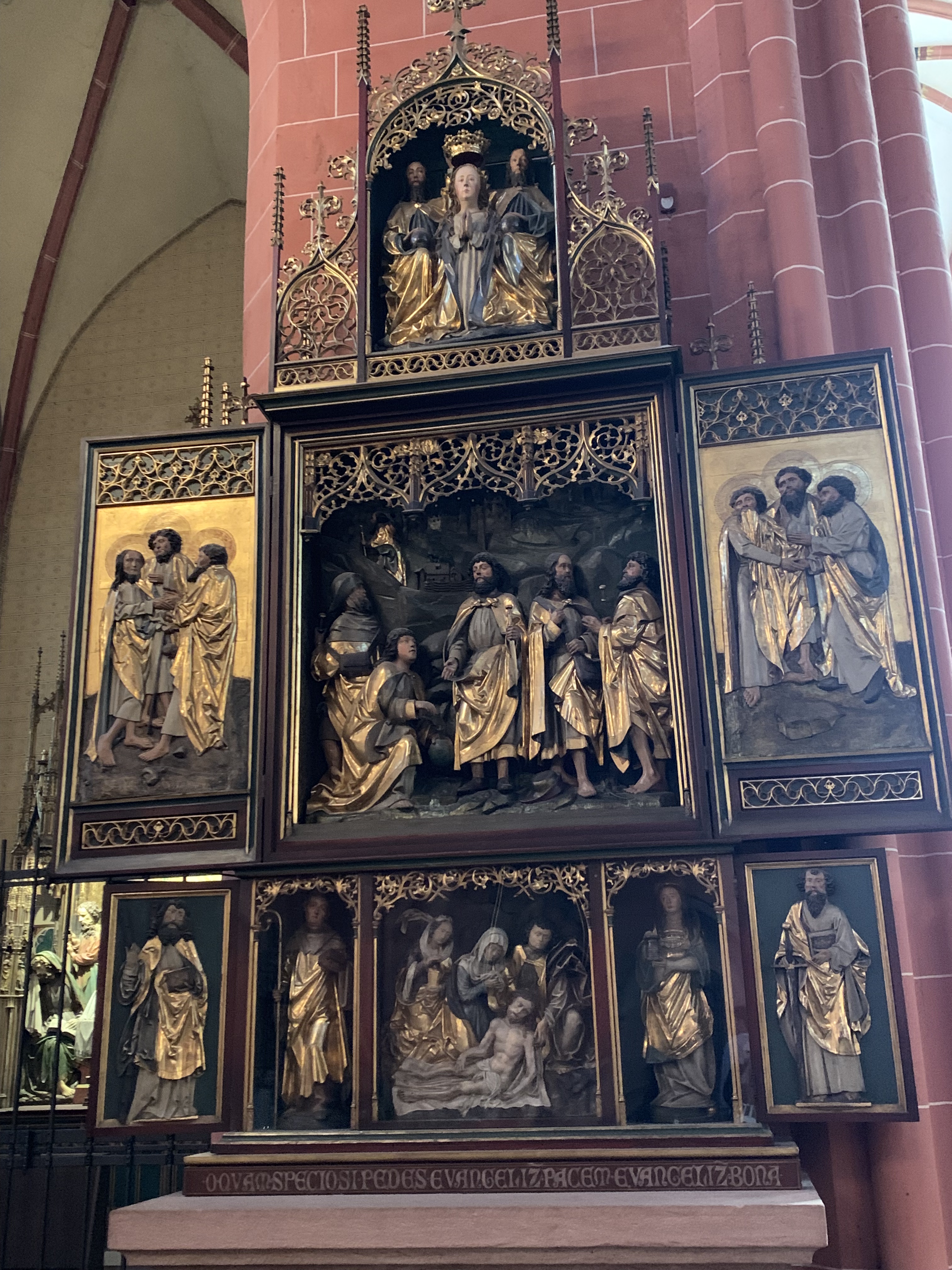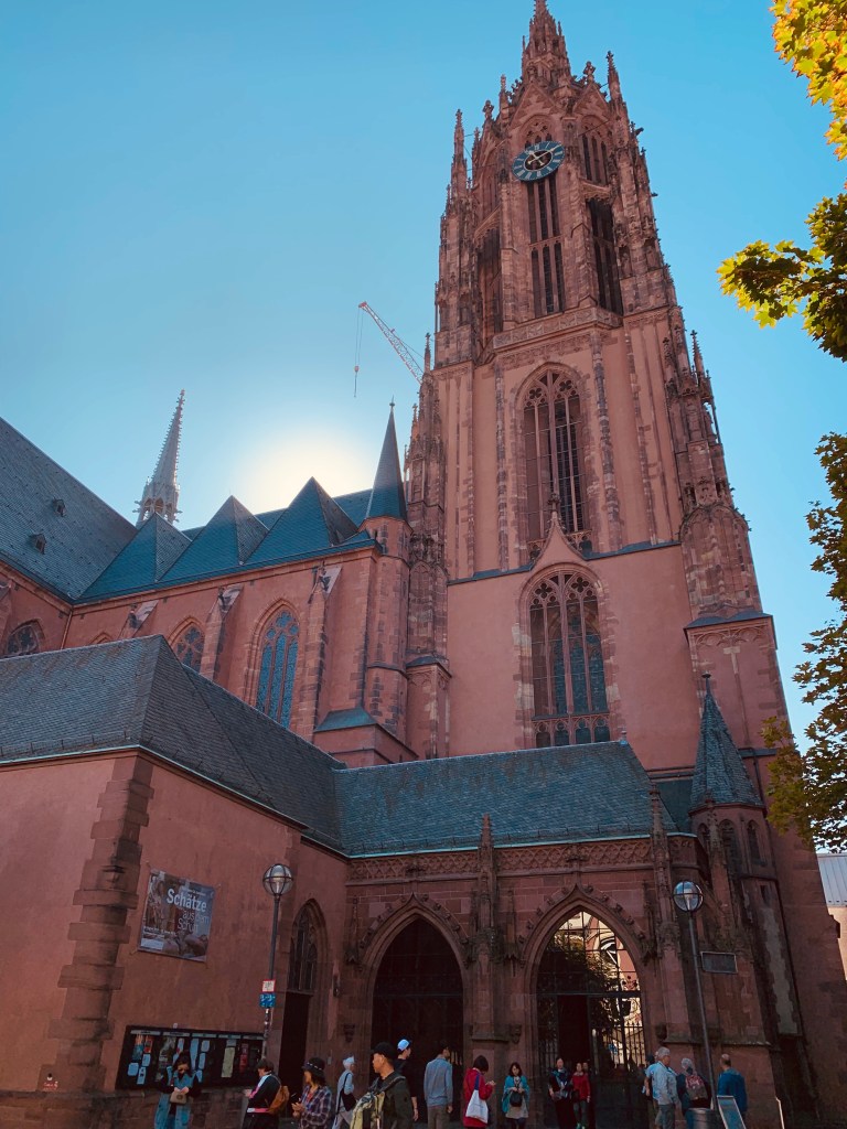 I wander outside of the main square to find Frankfurt Cathedral, a stunning Gothic church whose 95-metre tower reaches high into the Frankfurt skyline. I venture inside; it is massive but yet bright and peaceful. This church needed reconstruction after the war.