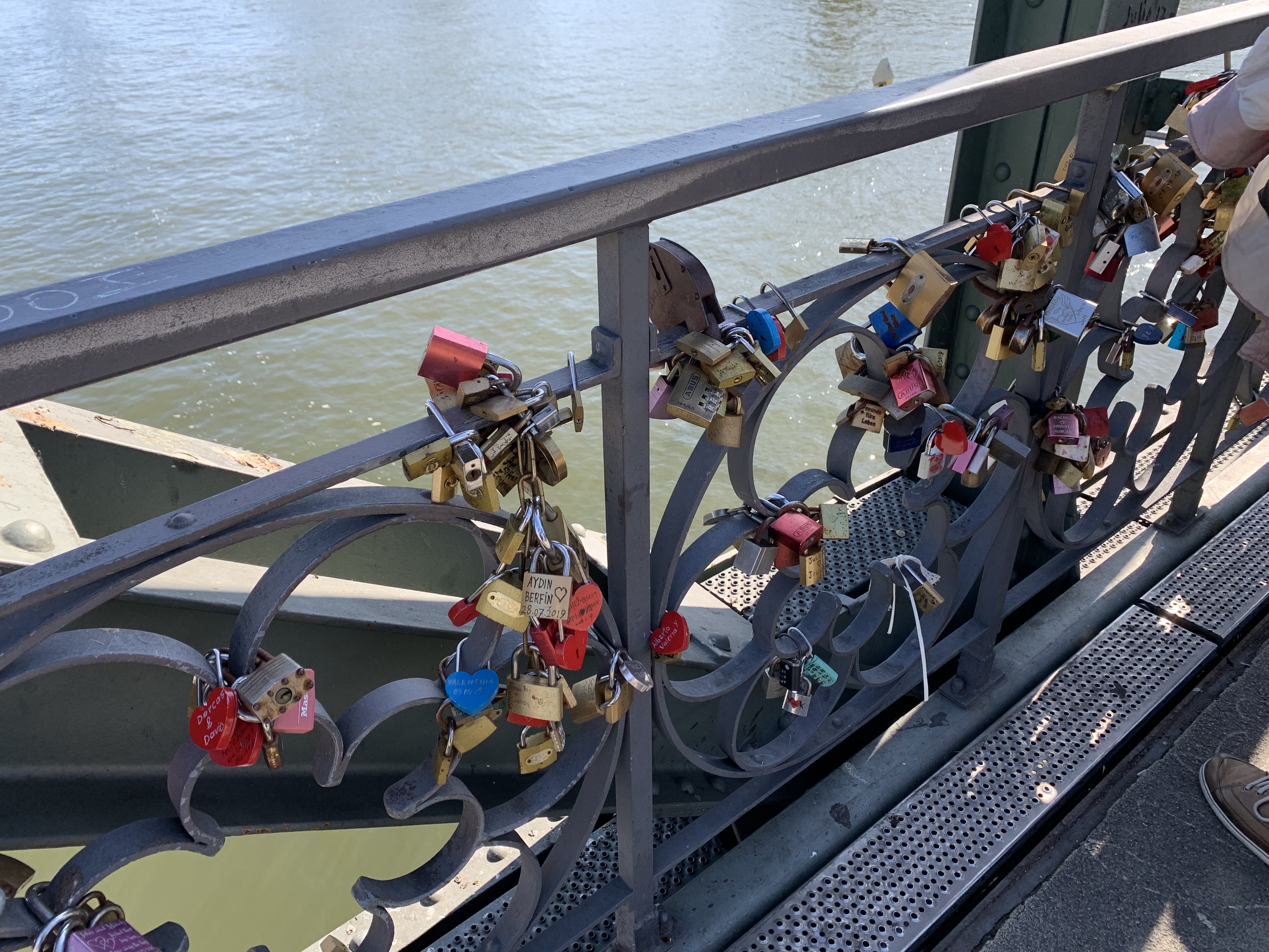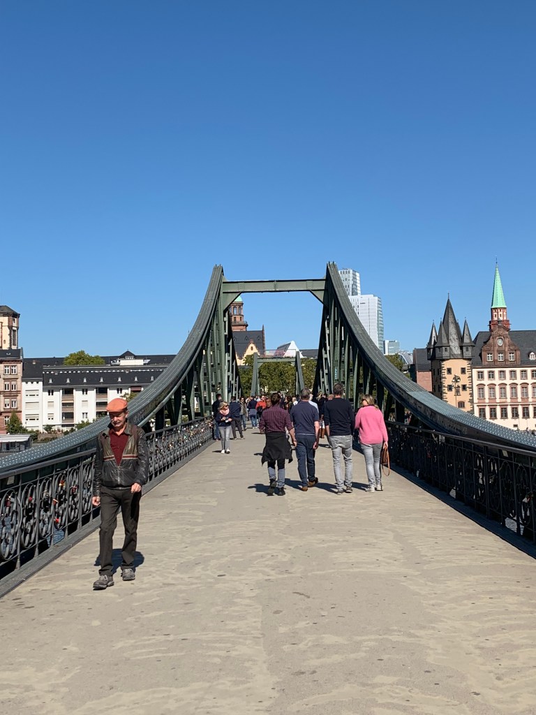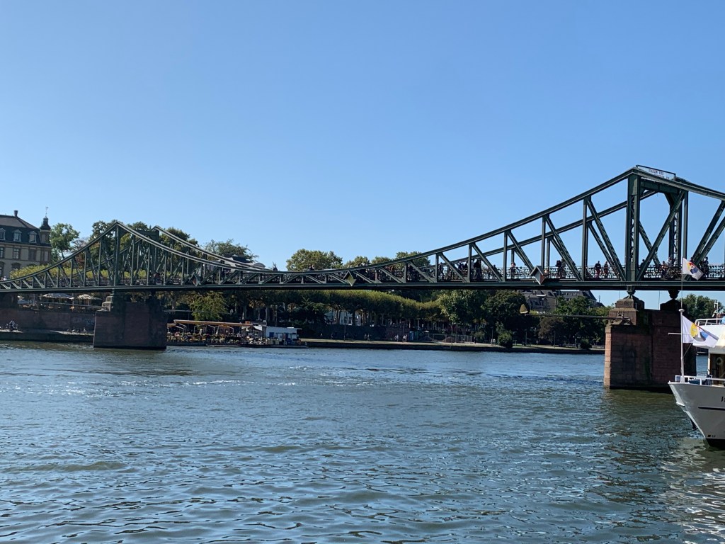 Over the water stands the Eiserner Steg (Iron Bridge), the pedestrian only bridge that is adorned with many lovelocks.