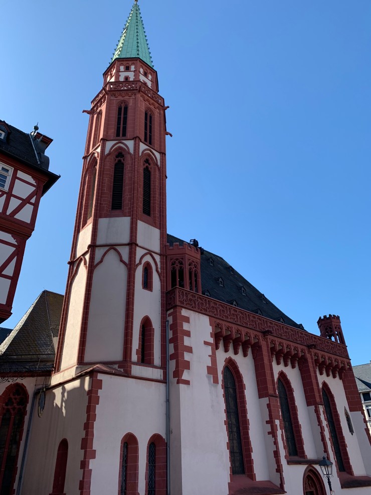 Romerberg – my favorite area in Frankfurt; a beautiful square with medieval half-timbered houses and important buildings. The main building is the pretty pink Romer, which is the city hall. In the centre of the square is the impressive Fountain of Justice, and on the opposite side of the square is the Old St. Nicholas Church, which survived the war without major damage. This area is also great for sitting out on a patio and enjoying some food and drink while people watching.
