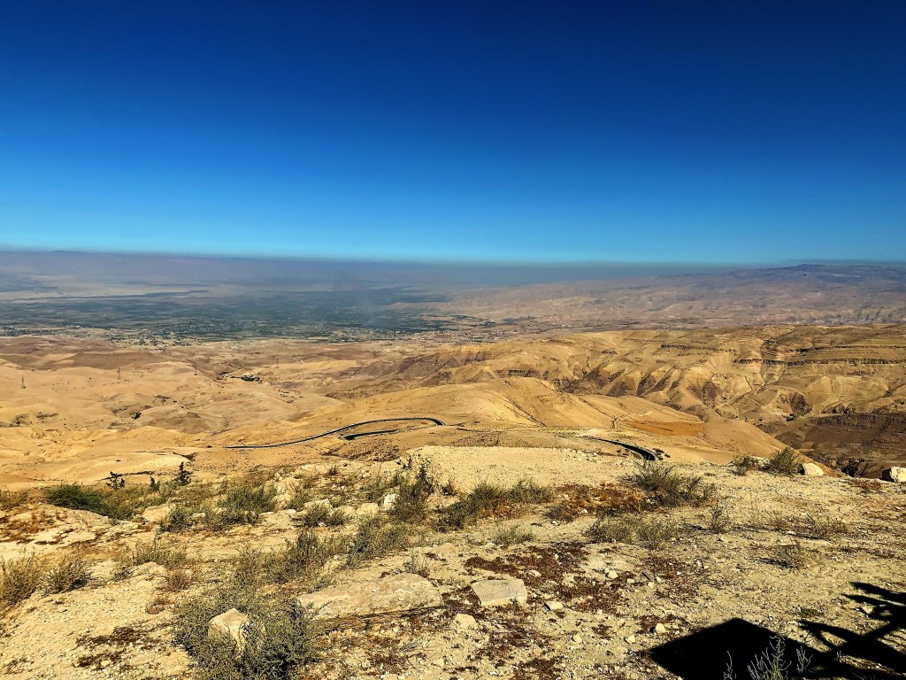 Continuing on the narrow highway through the mountains and deep valleys, we stop at a lookout point (I don’t know if it has a name?), and the views from up here are even better than on Mount Nebo.