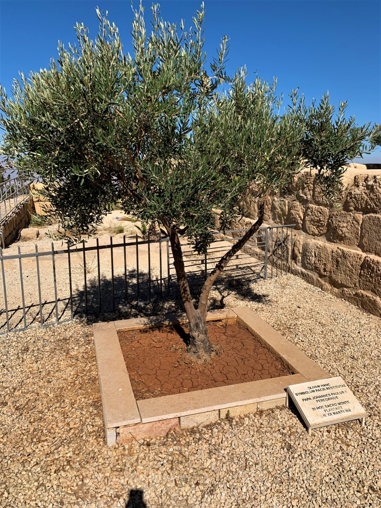 As I head back to the bus park, I pass the olive tree that was planted by Pope John Paul II when he visited during his pilgrimage to the holy land – a symbol of peace up on the mountain.