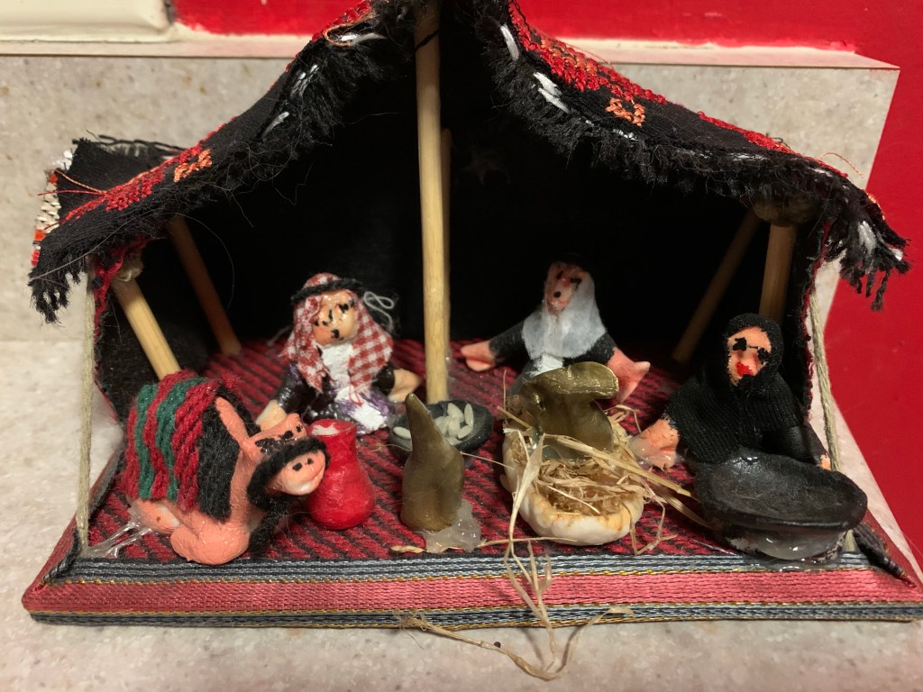I’m not too thrilled that we have no free time here in Madaba, so I convince Khalid to let me leave the church and walk back to the bus alone so I can do some power shopping because we are given WAY too much time at this church. I find one shop and quickly grab whatever I can find – a mosaic vase, a doll, a model of a Bedouin camp.