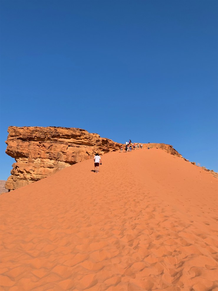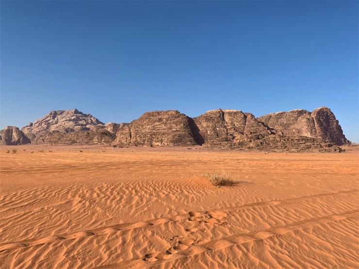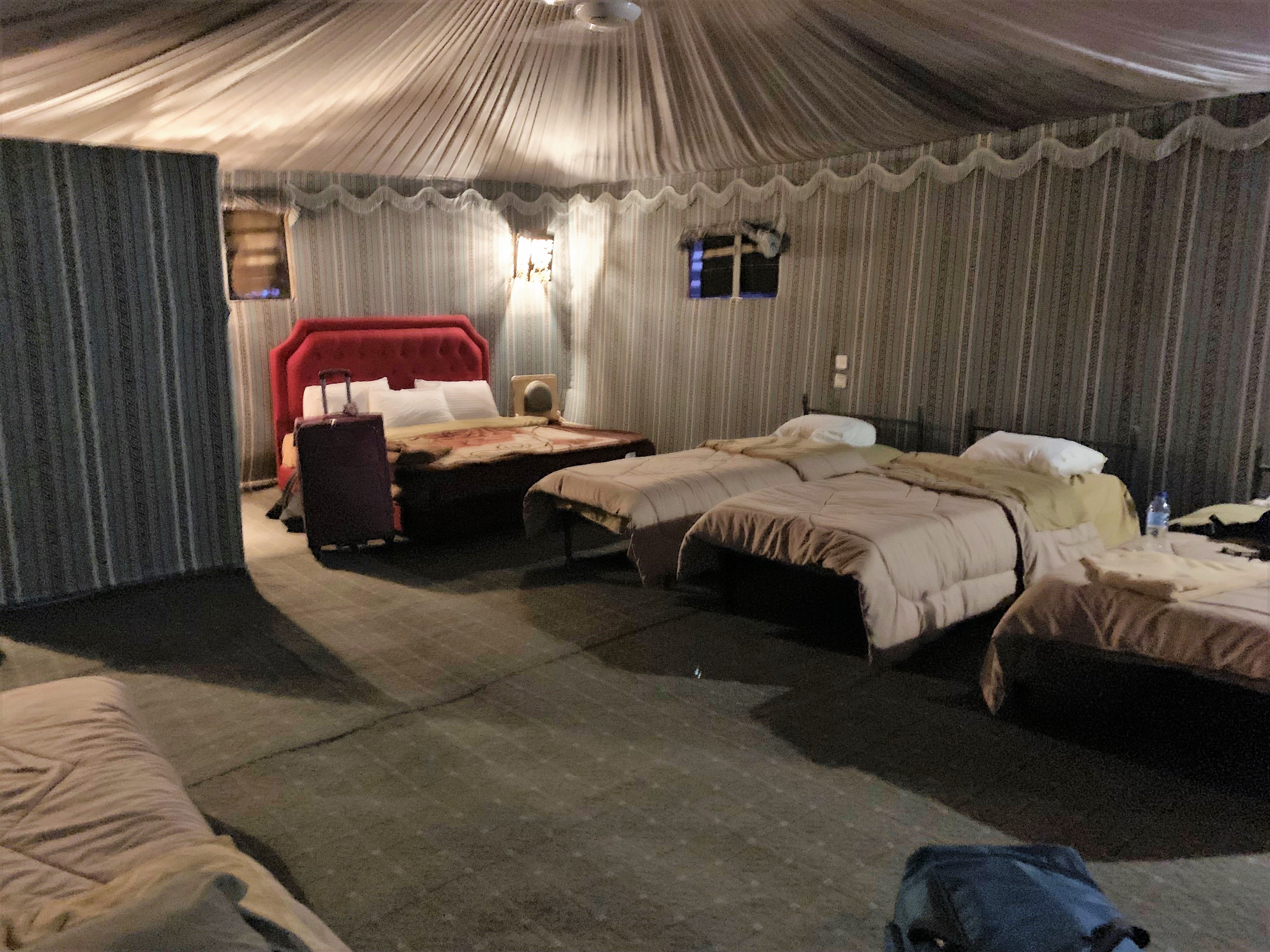We leave Petra in the late afternoon and drive for 2.5 hours to reach our desert camp in Wadi Rum. Also known as the Valley of The Moon, it is a valley cut into the sandstone and granite rock in the southern part of Jordan. Scenes of Wadi Rum were first made famous when Lawrence of Arabia was filmed there back in the 1960’s and now more recently the live action version of Disney’s Aladdin. And any movie that takes place on Mars, such as The Martian with Matt Damon and a few Star Wars movies. Fun activities you can do here are rock-climbing, horseback riding, stargazing and ATV rides through the thick sandy desert. Our digs for the night are at Captain’s Camp.