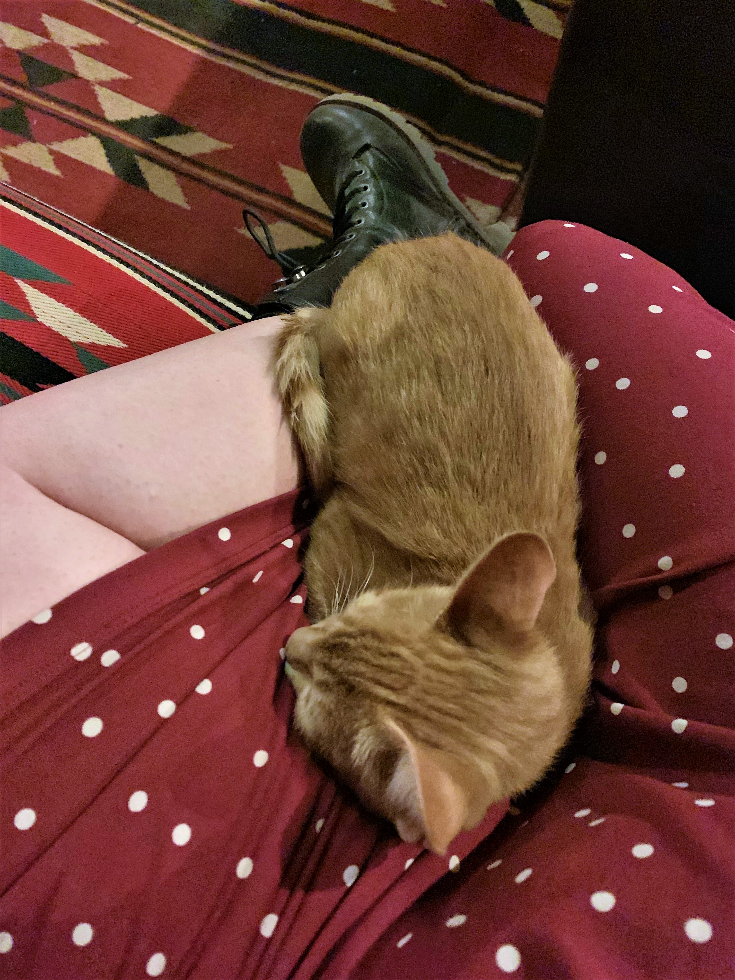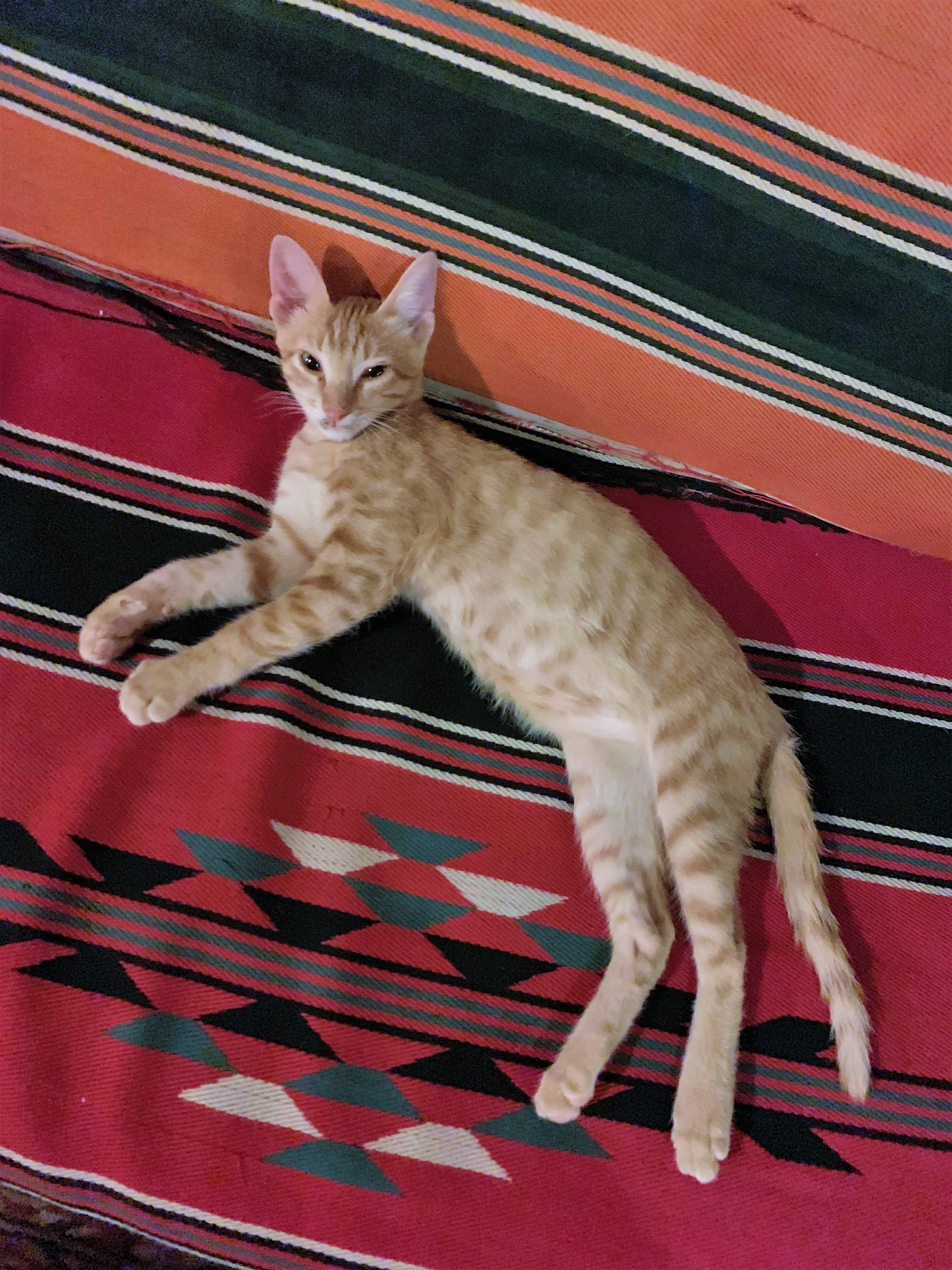 Before heading back to my super awesome deluxe tent, I sit in the reception area for a bit because it’s the only area that gets a WIFI signal. The most adorable kitty comes to join me and makes itself very comfortable in my lap.