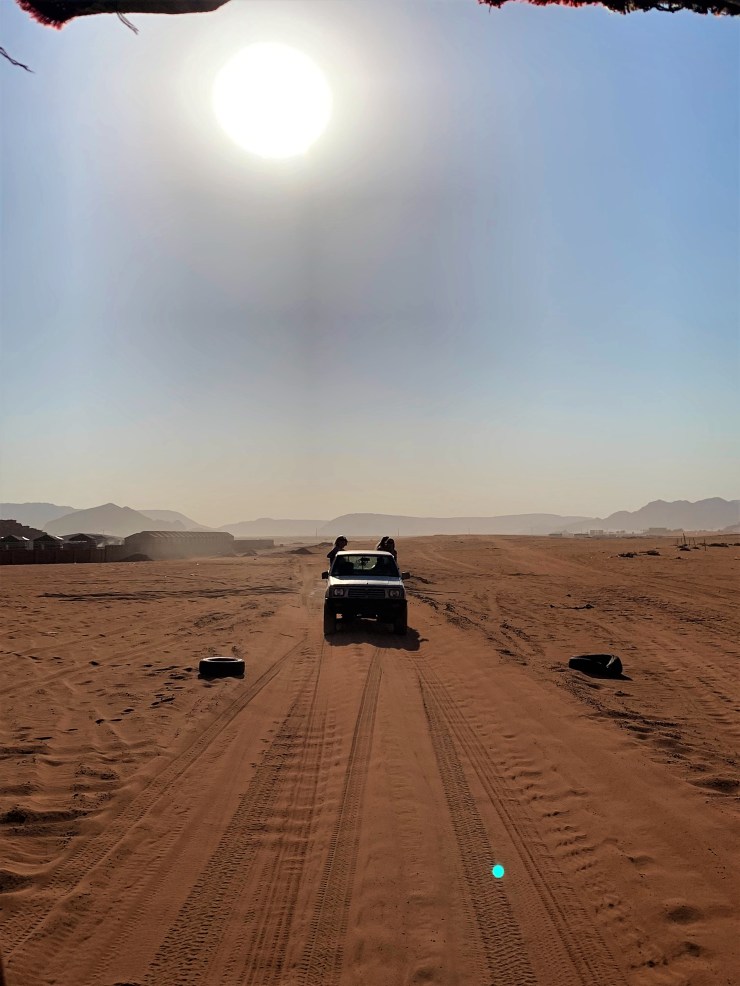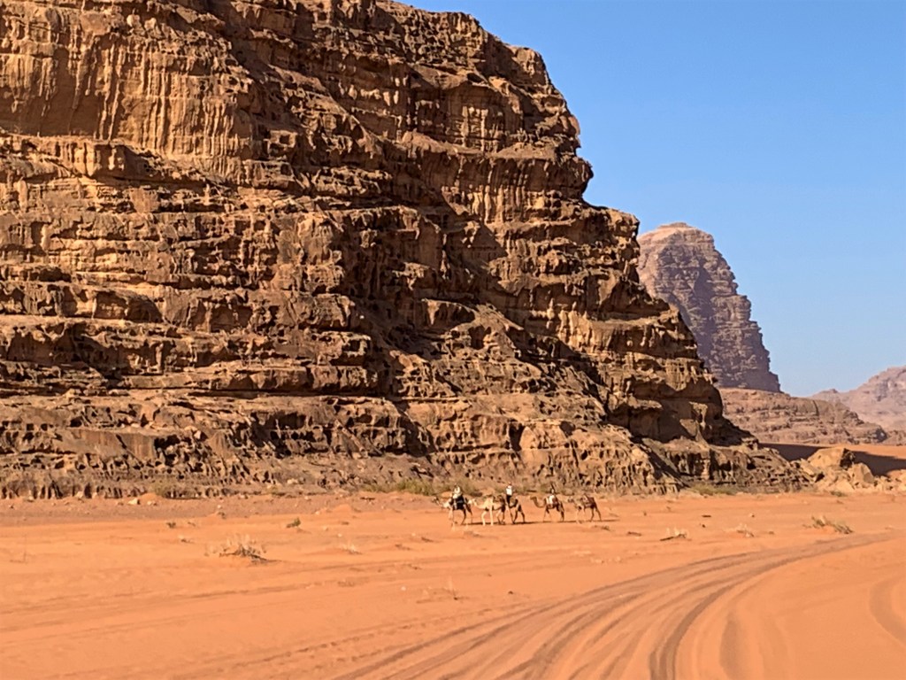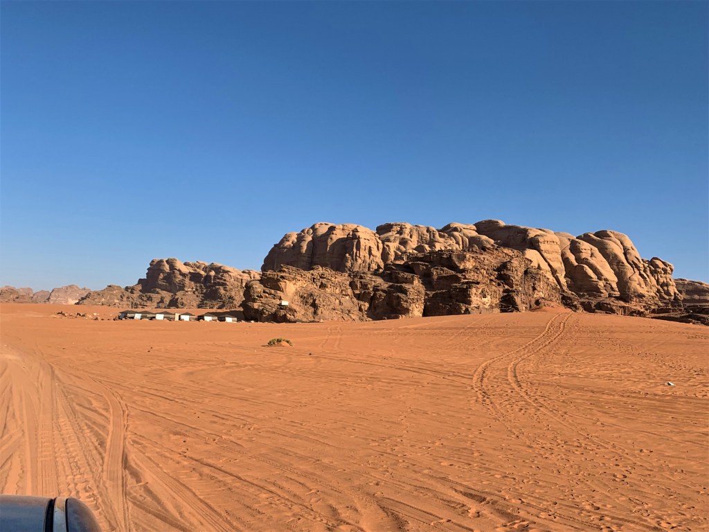 We drive through the vast Wadi Rum desert; there are many cool rock formations to marvel at along the way.