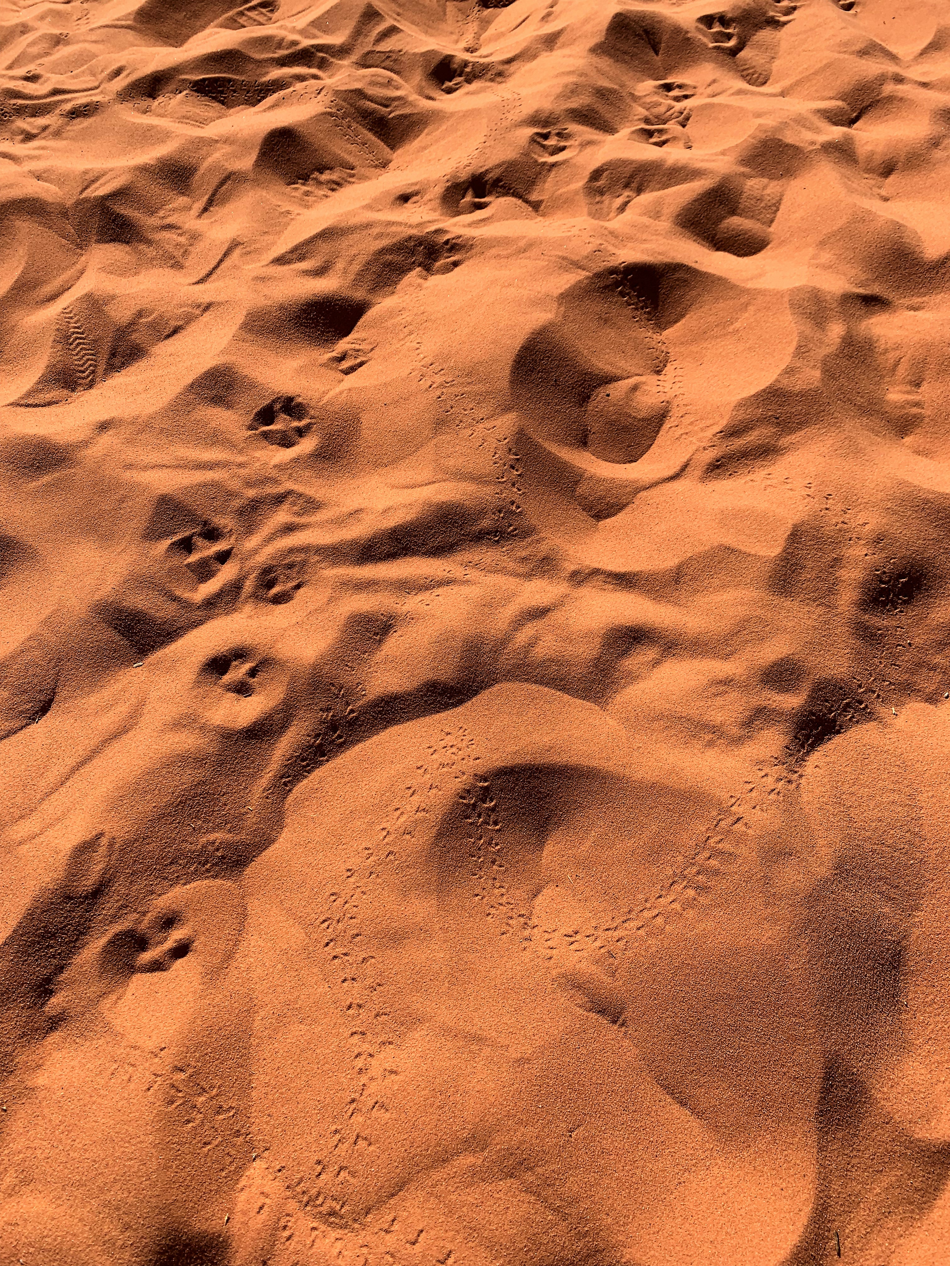 I discover some tiny animal prints in the sand and I ask Khalid what it could possibly be since it seems like nothing lives out here. He doesn’t know. Wow! Something he doesn’t know about, or need to go in to a half hour explanation about!