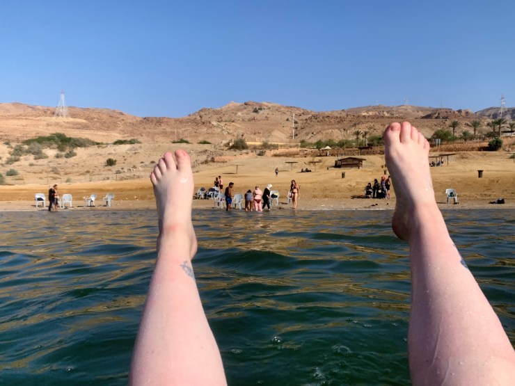 It is so salty in the Dead Sea that it makes for a harsh environment, preventing plants and animals from living and growing here. I only spend around 20 minutes in the water…mostly because I don’t want to get raging sunburn and I have a couple of minor cuts on my feet from my shoes and they are currently ON FIRE. Hahah literally “rubbing salt into the wound”. I head up to the open-air showers to rinse off some of the salt and these two super hairy dudes from Saudi Arabia want to have a chit chat. They are happy to hear I’m from Canada, but I don’t want to give off any inkling of interest so I keep it short.