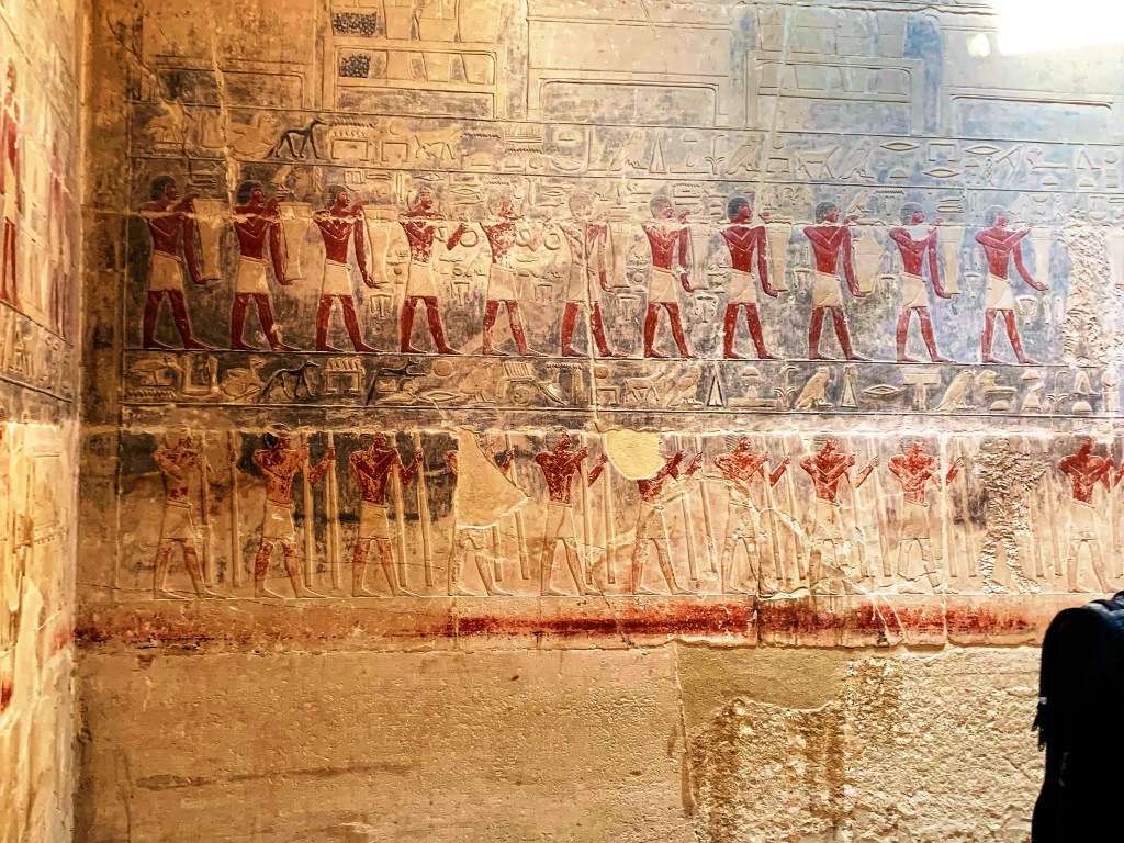It has many halls and rooms, and the walls are beautifully decorated with scenes of daily life, wildlife, fishing. It is fascinating to take it all in and since it is my first look inside an Egyptian tomb, it’s pretty special.