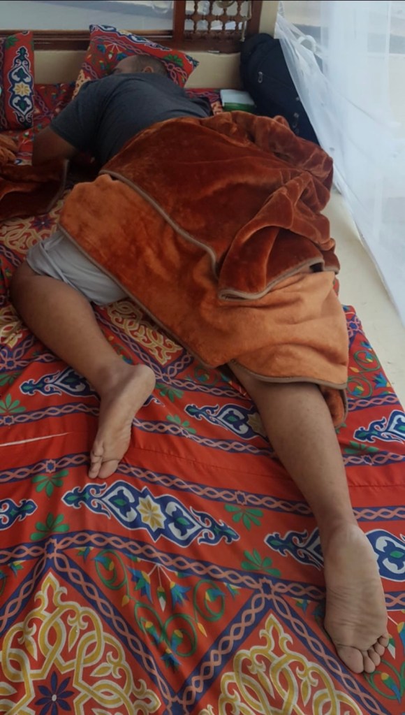 Today I set my alarm for 5am, because we are supposed to get a head start. It’s so peaceful waking up on the Nile, and I had a pretty amazing sleep. We are all awake, but our guides are still sleeping! And one of them is making this really annoying sound that’s not like a snore; I’d describe it more like a sleep honk.