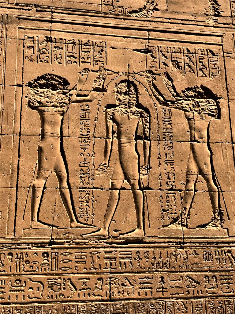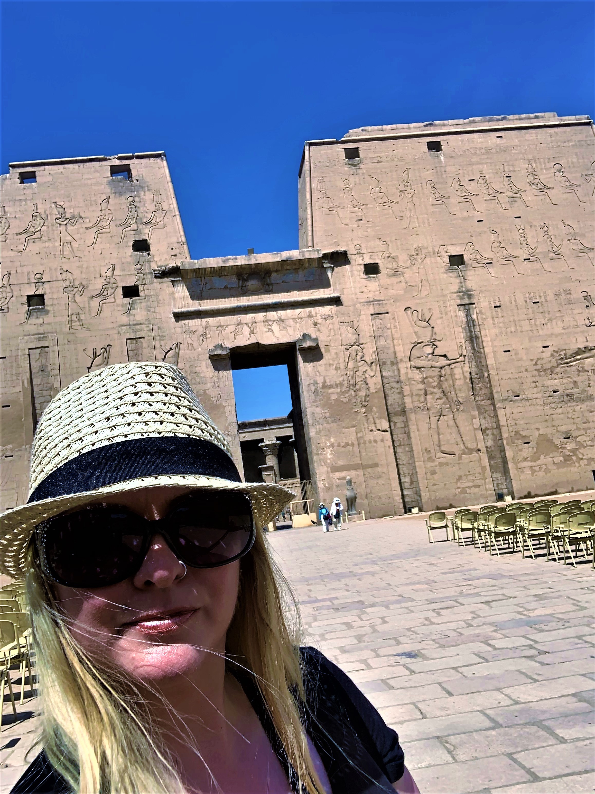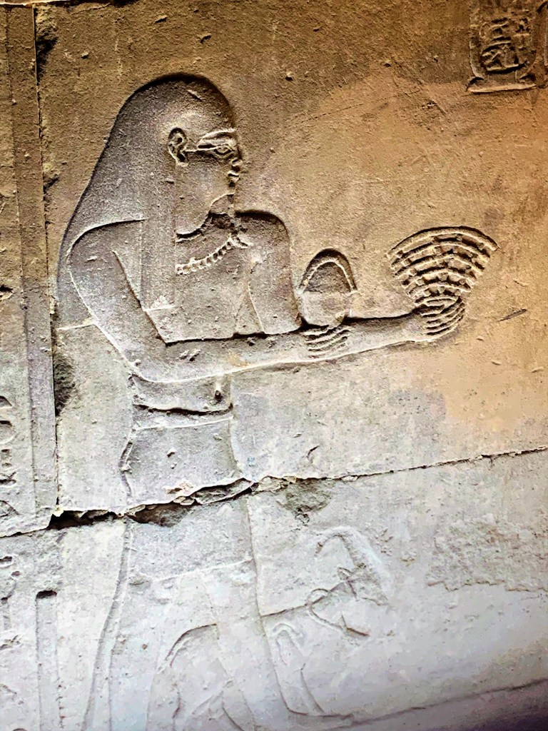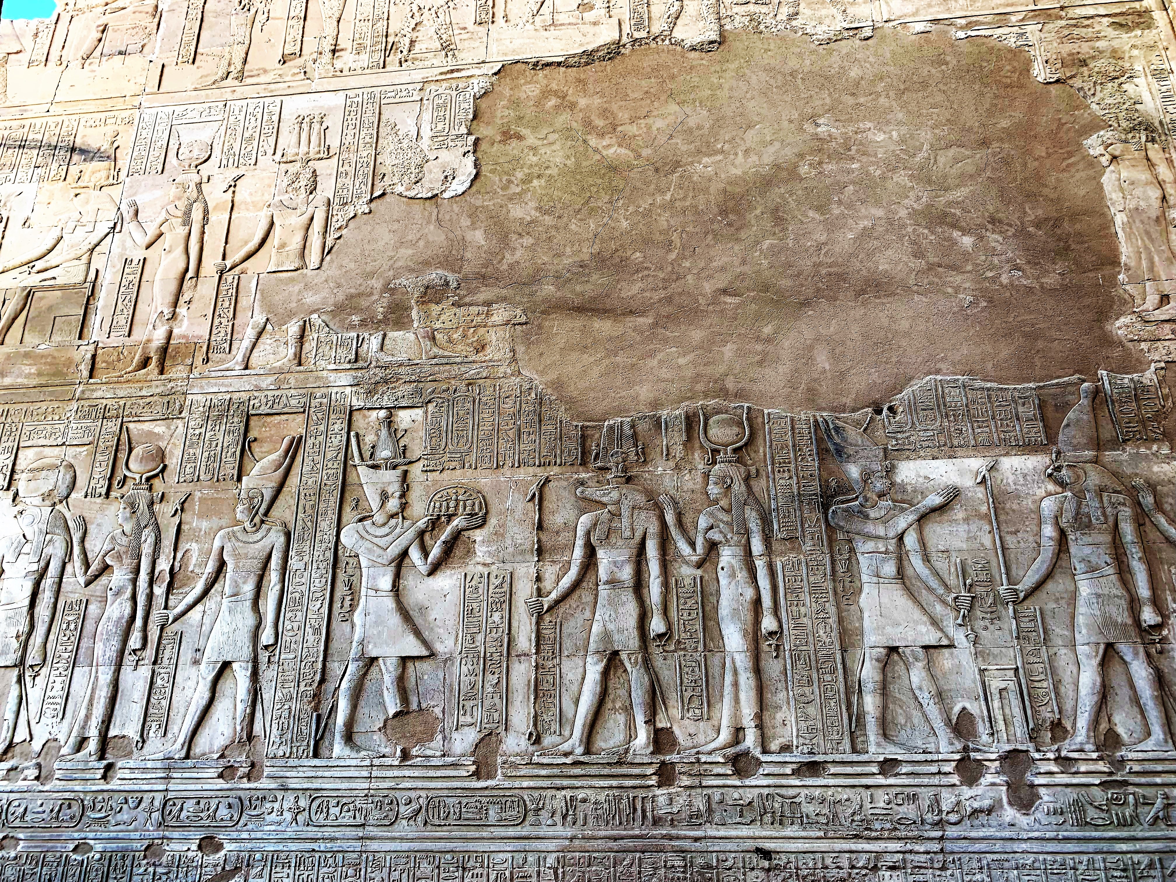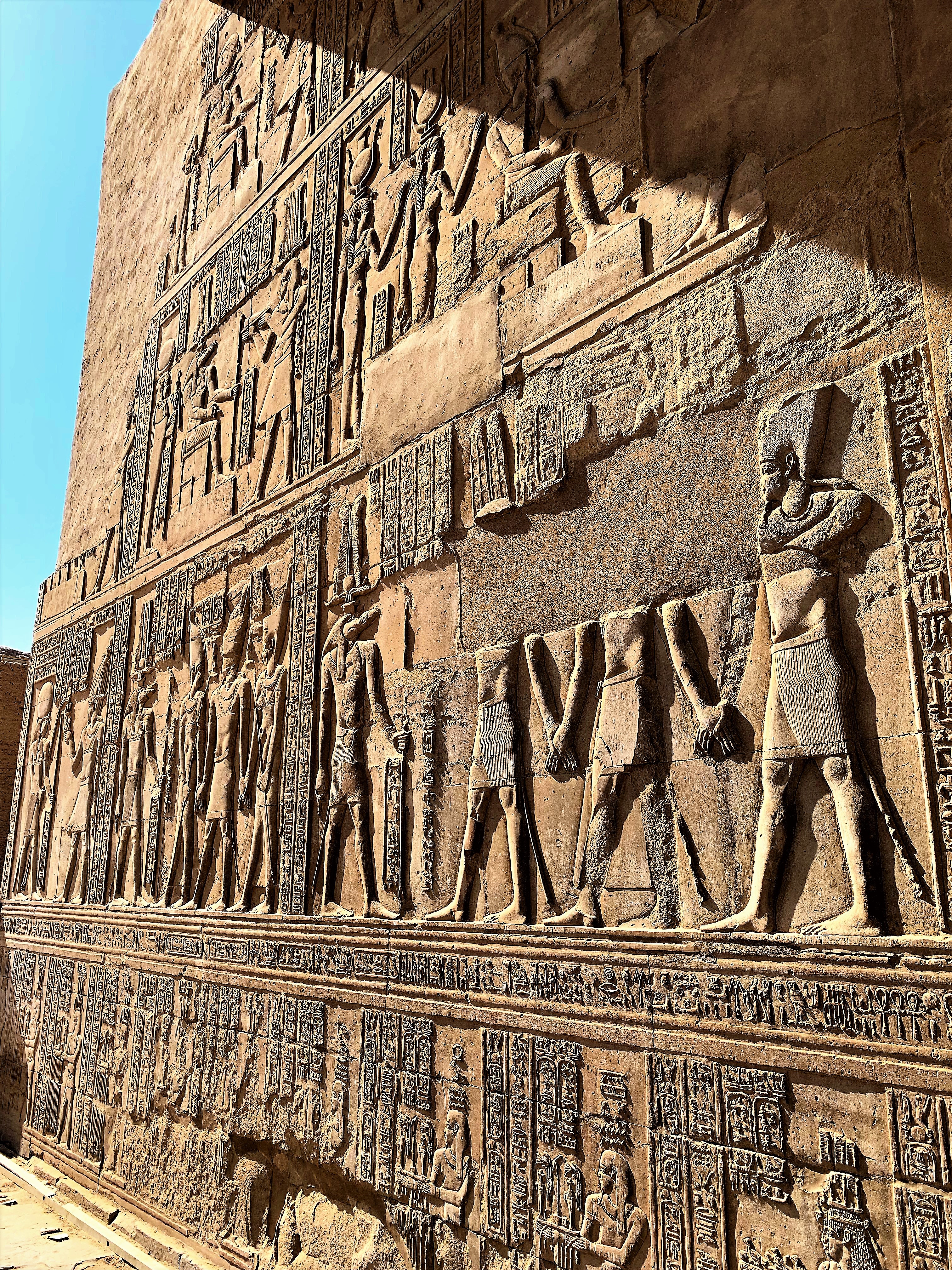 The inscriptions on these walls provided so much information about language and religion during this period and the giant hieroglyphics make you feel small. We walk through the Great Pylon, where there are statues of Horus guarding the gates.