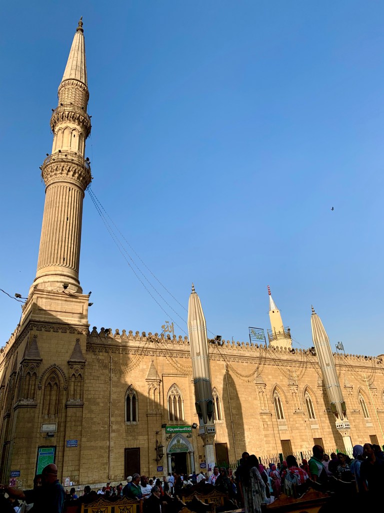 Last stop of the day is in the historic center of Cairo – the Khan el-Khalili, a famous shopping bazaar. First we sit down for lunch in the square next to the gorgeous al-Hussein Mosque.