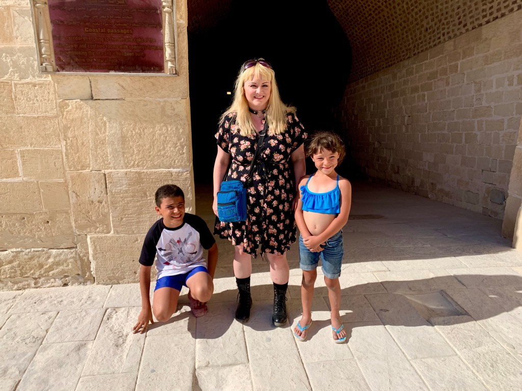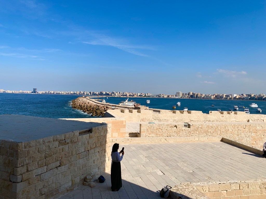 It was built on the site where the Lighthouse of Alexandria once stood. We enter the large stone structure and explore the hallways and small rooms in the fortress.