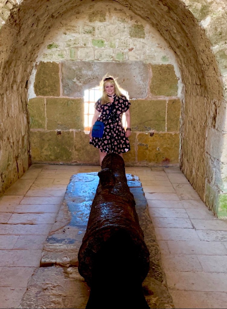 There are 3 levels that were cut through solid rock, but the bottom level is now underwater. We head down the spiral staircase that leads underground, the cool damp air makes it even creepier as we go down further.