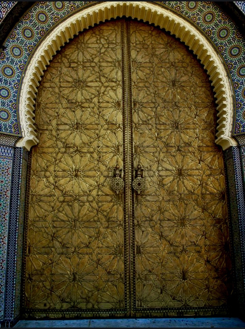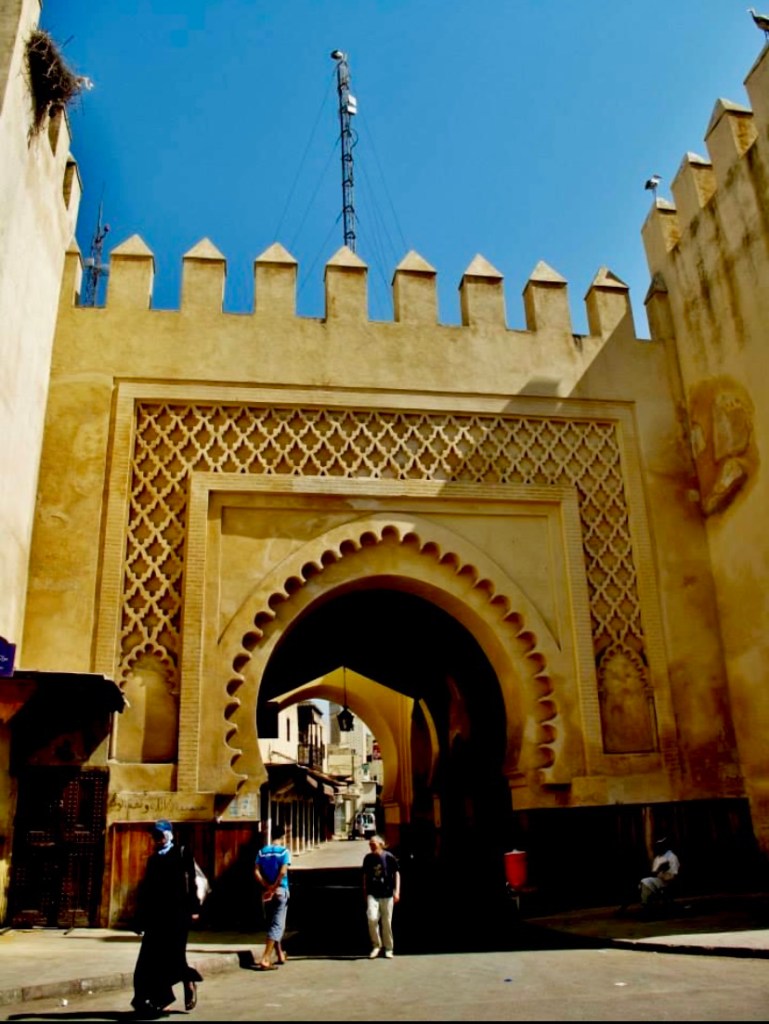 Fes is one of the four Imperial cities of Morocco, and the second largest in the country. It consists of two old medina quarters, making it one of the world’s largest urban pedestrian area and a UNESCO World Heritage Site. We have another guide today that will show us some significant places in the city. First stop is the Royal Palace, and we admire the large ornate entry gates with its cool gilt bronze doors and the tiled mosaic.
