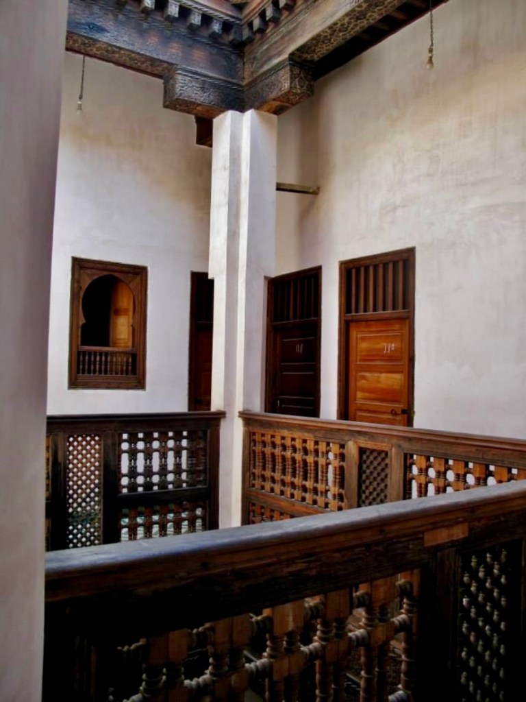 There are no students here right now, because most of these schools are no longer in use. They are usually serene and quiet, a nice escape from the bustle of the medina that surrounds it. The architecture is beautiful and is made of brick and cedar wood. A simple but pretty fountain sits in the centre of the courtyard.