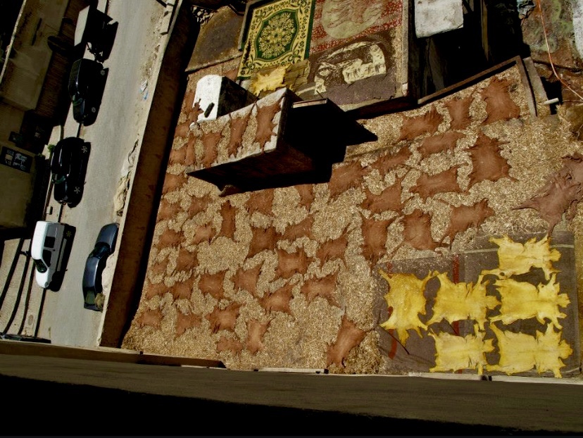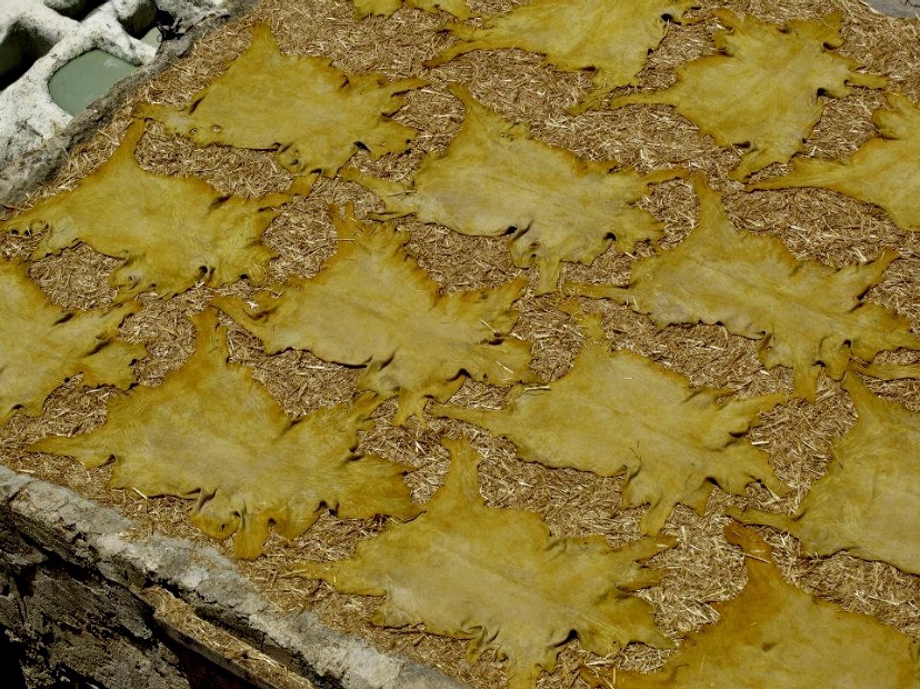 And here’s how it works: they take the skins of goats, cows, sheep and camel and soak them in a special liquid to clean them and soften the tougher skins which takes a few days.