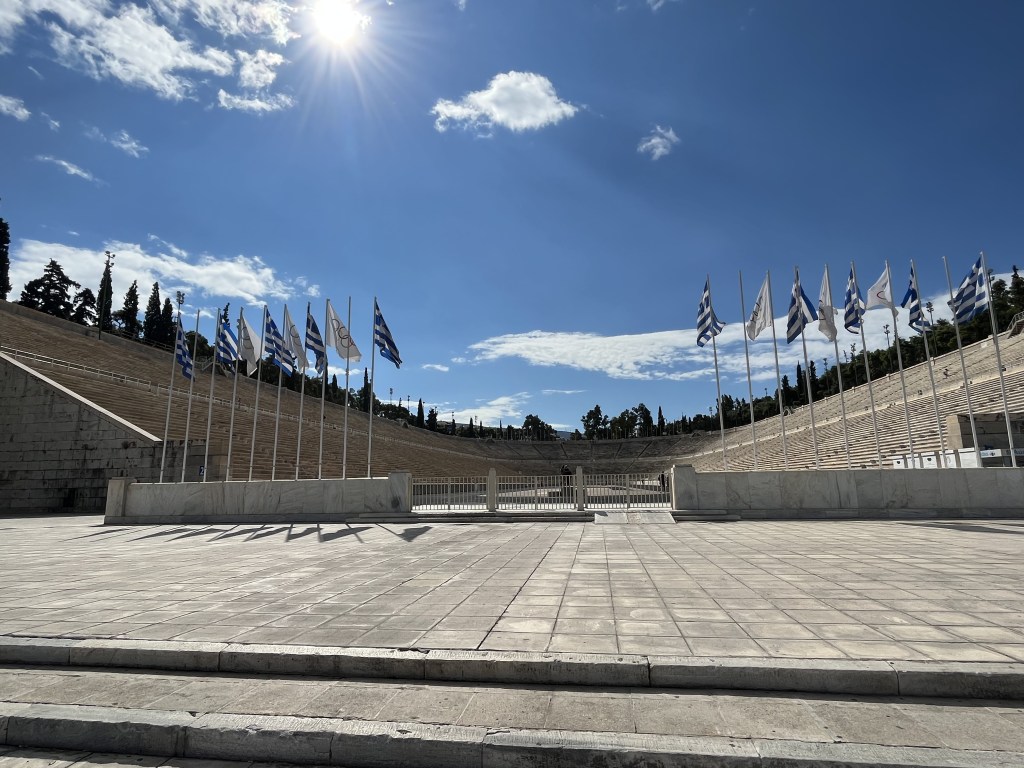 We meet our local guide Babis and we make a quick stop at the Panathenaic Stadium, which is the only stadium in the world built entirely of marble. Wow!