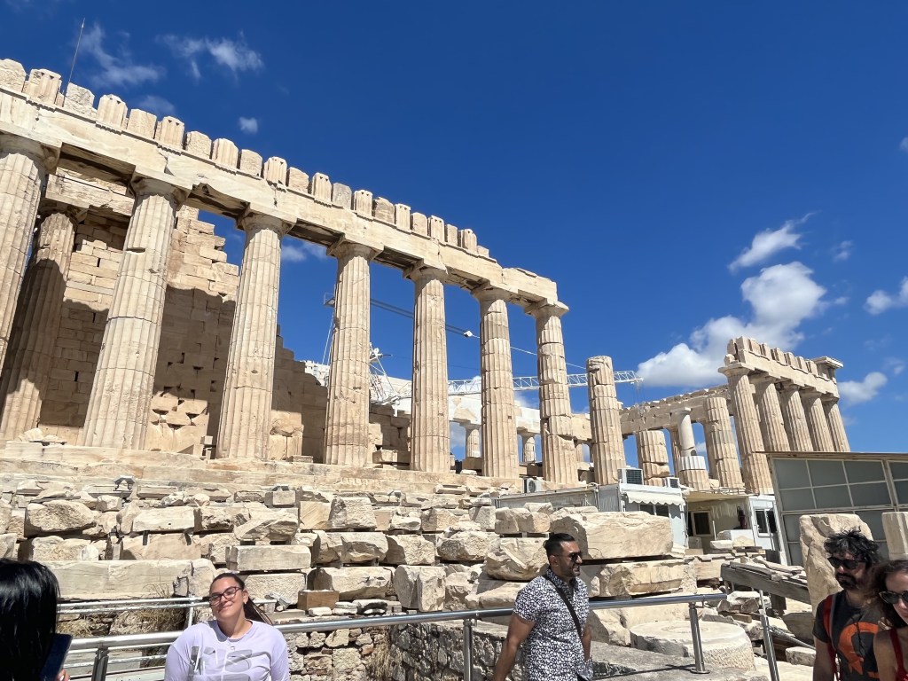 Our guide Babis is still with us, and he’s got a great personality but I’m not finding his info very interesting and I just want to go explore because we have limited time. We’ve got those headphone tour box things, so I can still hear him when I wander off. Perfect. So, what’s up here on the hill. First, the Parthenon…