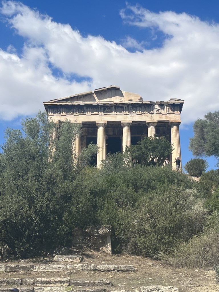 Now there’s not a lot of shade here in these ruins; we’re nearing the end of our heat and sun tolerance. But not before we climb up a little hill to the temple of Hephaestus.