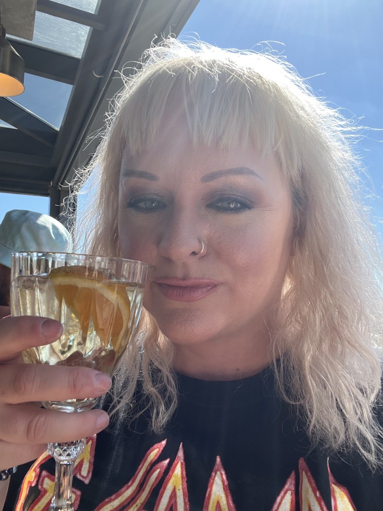 We sit down for lunch, and bad blogger didn’t catch the name of the restaurant. The main course for lunch is lamb sausage skewers. Not amazing, but not bad. After lunch we hop back on the big coach bus one last time and say good bye to the group as they continue on to the Greek Islands. Remaining in Athens for the night are myself, Vanessa, Sophia and Deepti. We had considered doing a night out in Athens, but decide to stay at the hotel and enjoy the rooftop bar. We order pizza and drink beer, wine, and Metaxa – a Greek brandy. A perfect girls night!