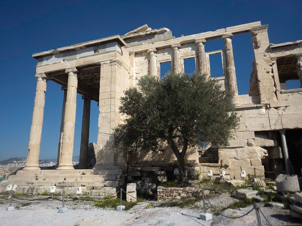 If there’s one thing I’ve learned while researching this temple…they can’t quite decide exactly what this building was or what it was used for. Standing in front of the Erechtheion is a moria olive tree, thought to be in the same location of the very first olive tree given to Athens from Athena.