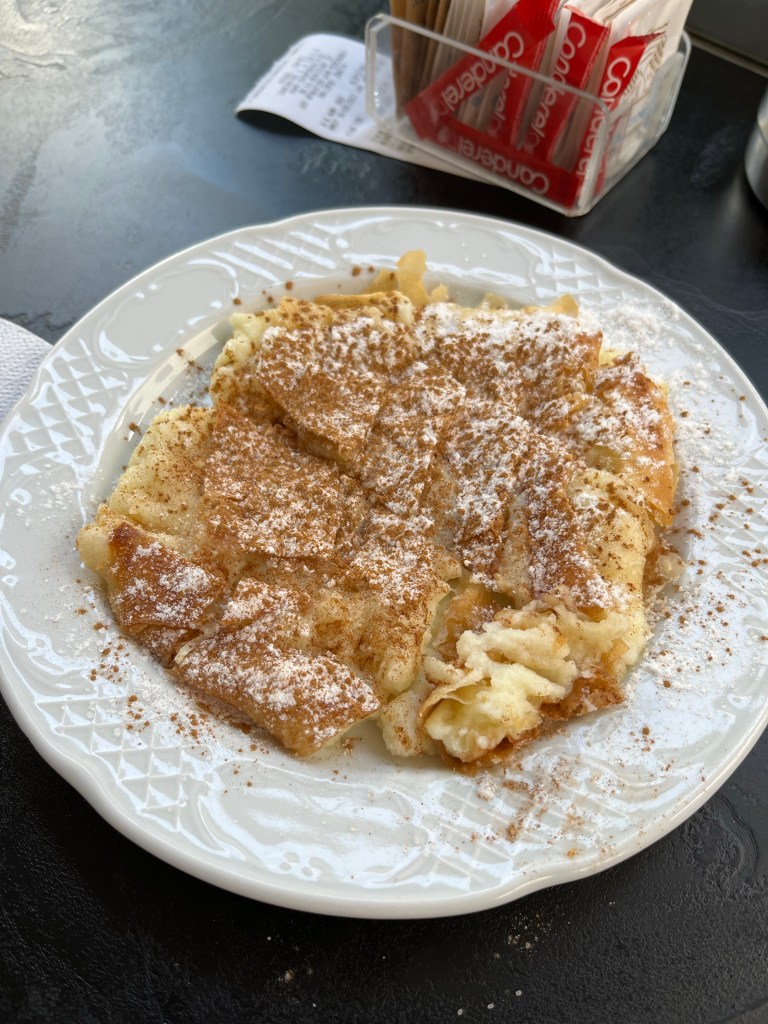 This morning I head over to Lions Square again for breakfast. This time at Phyllo Sophies, where I have another bougatsa – this time it’s cream filled.