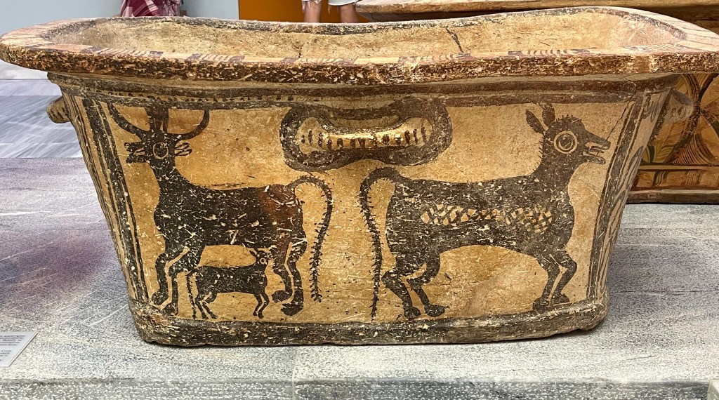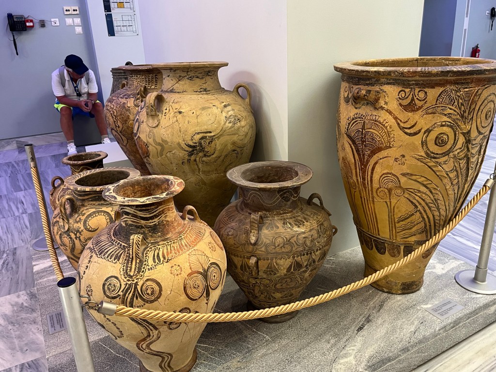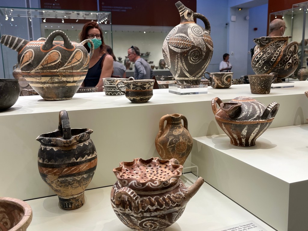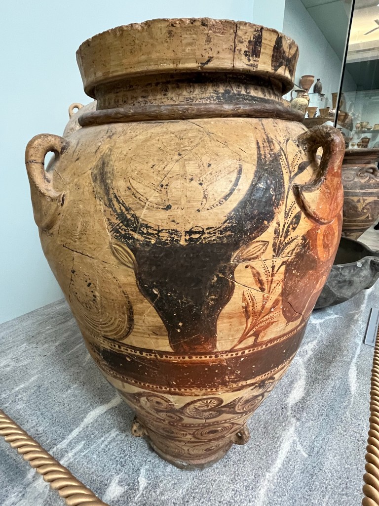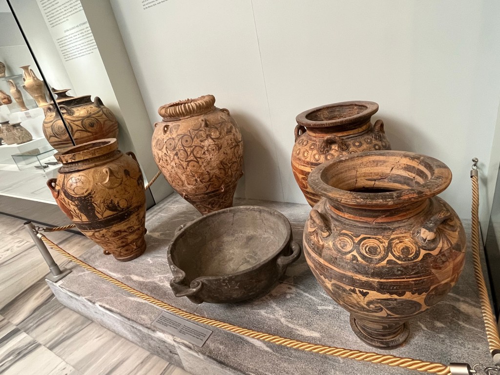 And now I’ve seen everything I need to see, so it’s time to hop back on the bus to Heraklion. And for a comfortable ride home, I get to have 2 older local men staring at me the whole time. Haha. When I arrive, I head over to the Heraklion Archaeological Museum. I wasn’t sure if I was going to come here, but it was only an extra couple of Euros on top of my Knossos ticket. SO glad I did – this is by far my favorite museum in Greece. Most of the artifacts found here are from Knossos or other Minoan sites in Crete. So here’s a quick tour. First up, some cool pottery representing Neolithic life and the early Bronze Age. So much pottery.