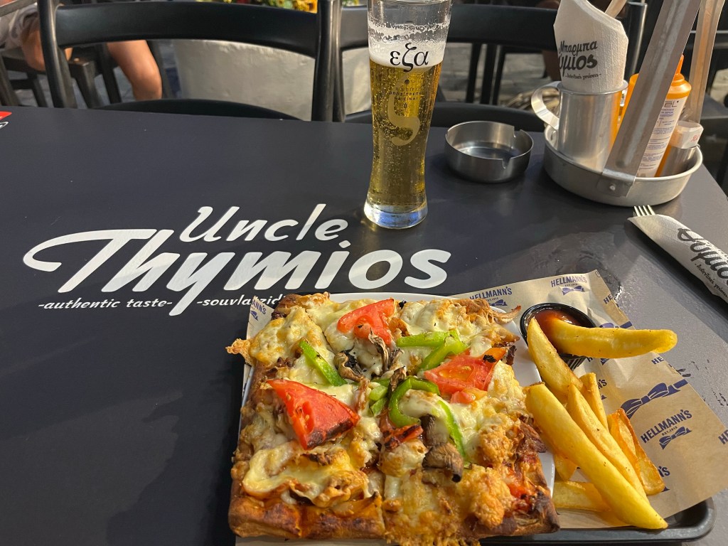 They serve a pretty awesome pizza gyro and ice-cold beers.