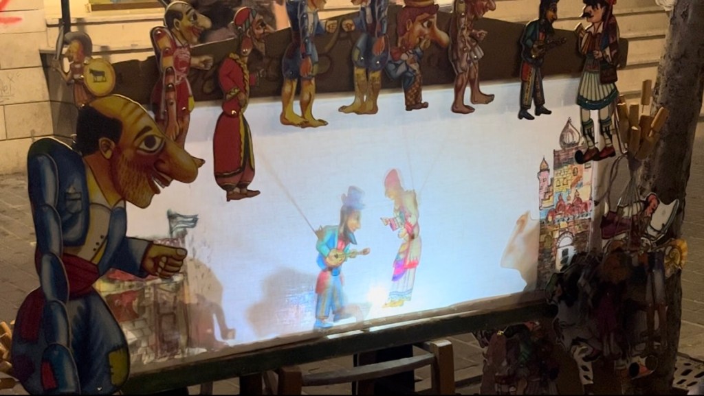 I walk around for a bit, soaking up the atmosphere of buskers singing in the square and a shadow puppet show.