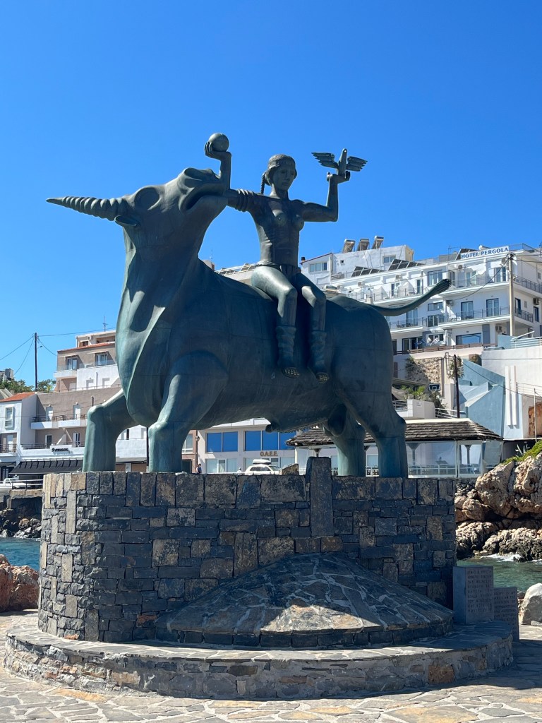 I tried it in Athens and it was so good I have to have it again. I walk back down to the parking lot for bus pickup and it’s close to this cool statue, The Abduction of Europa.