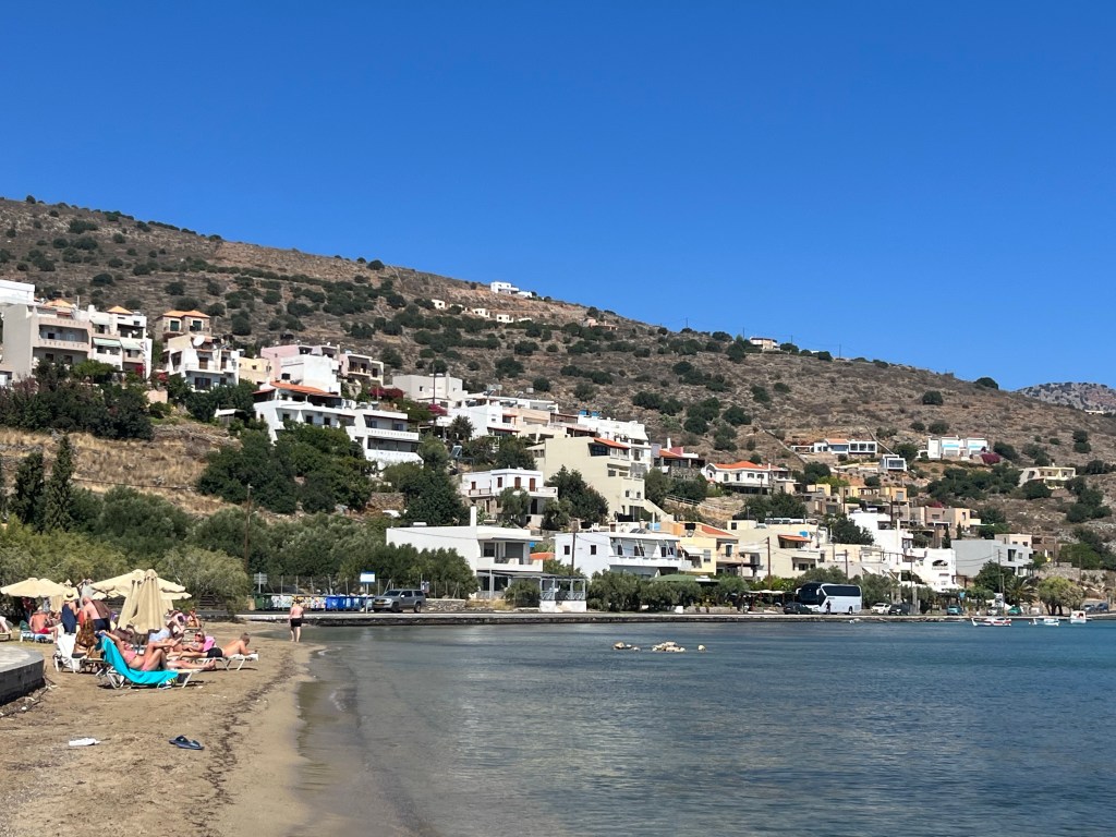And now it’s a short drive to our beach spot at Elounda. It’s a pretty little fishing village; a popular spot to relax and soak up the sun.