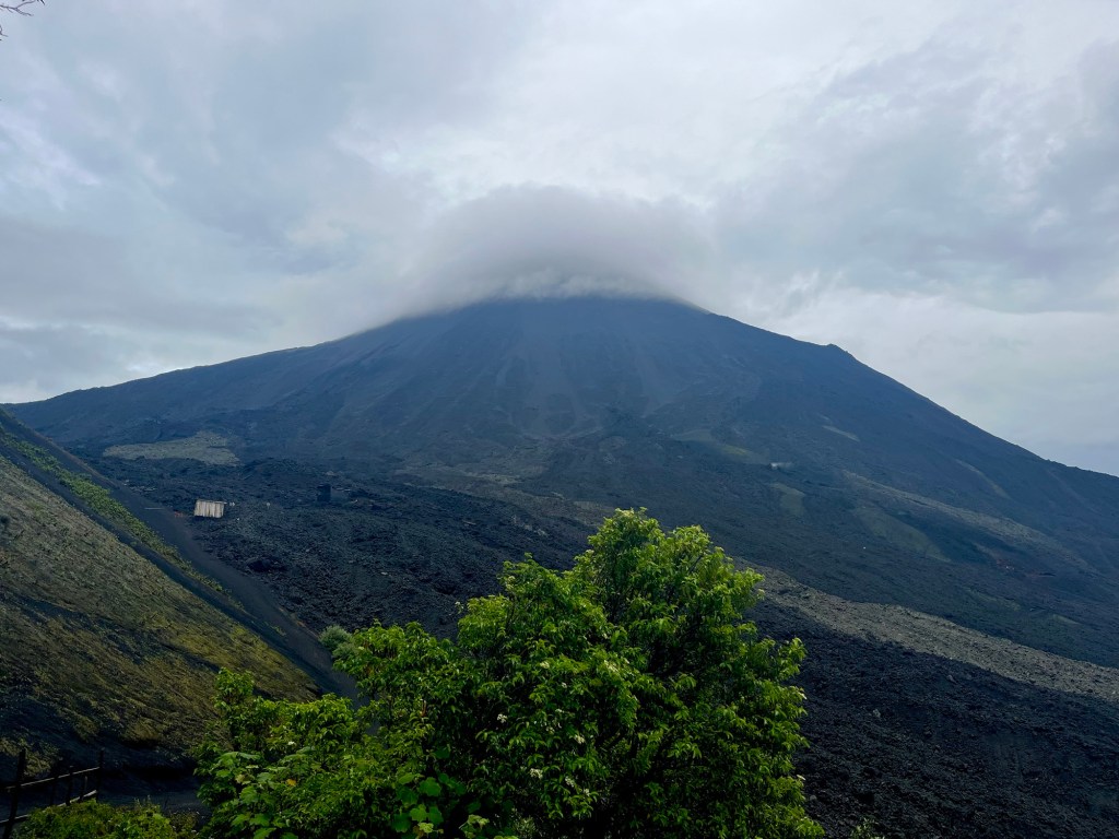 I get to the viewpoint before everyone else so I have some time to admire the beauty of the volcano on my own. The top is periodically covered by clouds, as they casually drift over its peak.