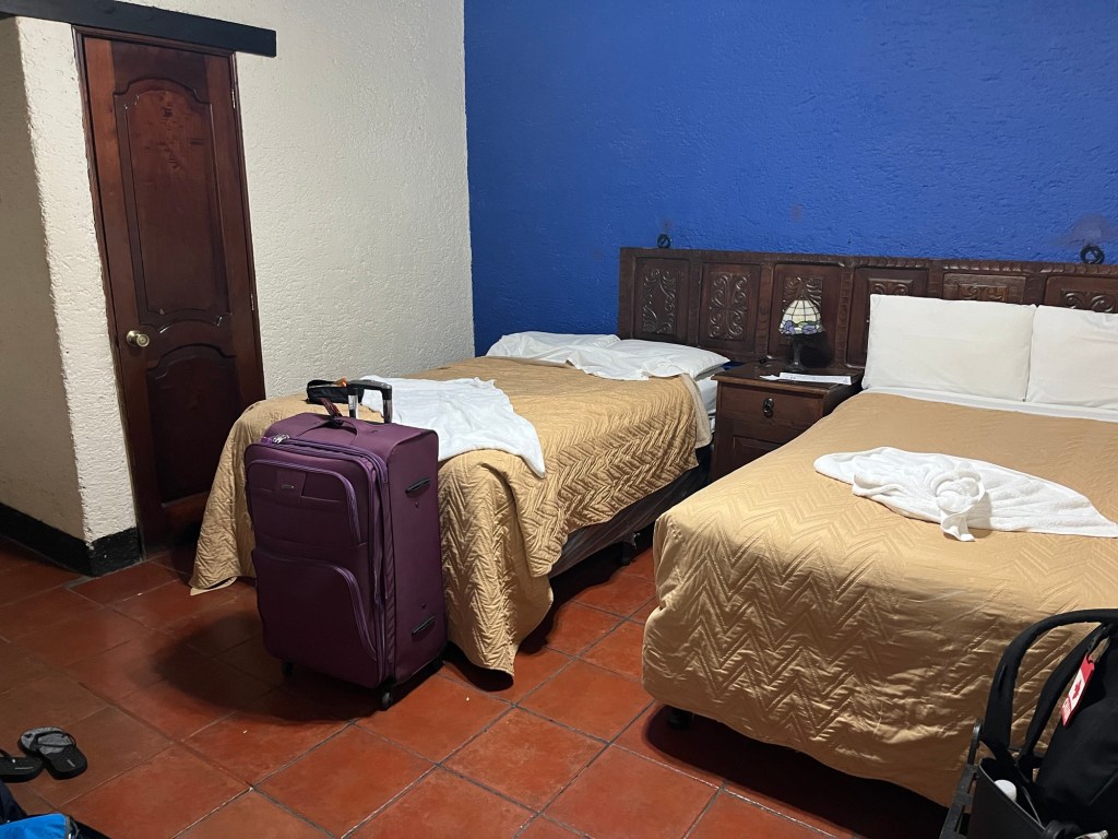 I order the chicken quesadillas, not bad. It’s a nice evening to get to know my fellow travelers; I think it’s gonna be a fun group. When we leave the restaurant, it is absolutely pouring and most of us don’t have any rain gear with us. We stop at a super market and pick up matching rain poncho jackets, and make our way back to the hotel, navigating the slippery sidewalks and cobblestone roads. And there’s no time to party hard tonight, because we need to leave at 3am tomorrow morning for the long drive to Honduras…OMG this is going to be torturous….