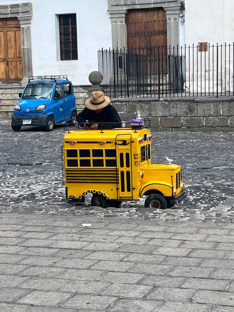 It’s not as intricate as the others, but still pretty and I get to have a look inside. Beside this church is a road that a lot of the chicken buses travel through from the nearby bus station. They are old school buses from the US that have been auctioned off and sent to Central America to be used for public transport.