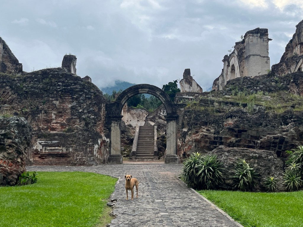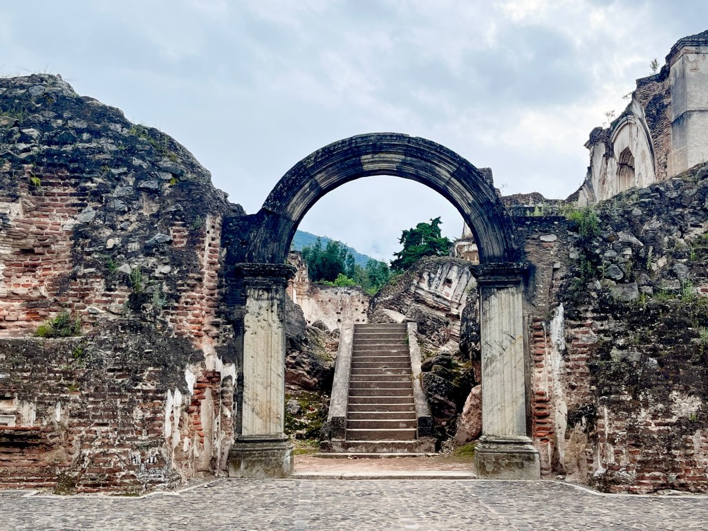 My last stop is La Recoleccion – I almost don’t go in because I have no Quetzals left (local currency) and I don’t want to use my US dollars. But I strike a deal with the guy at the gate and I’m off to explore these ruins. I walk through the archway and up the staircase.