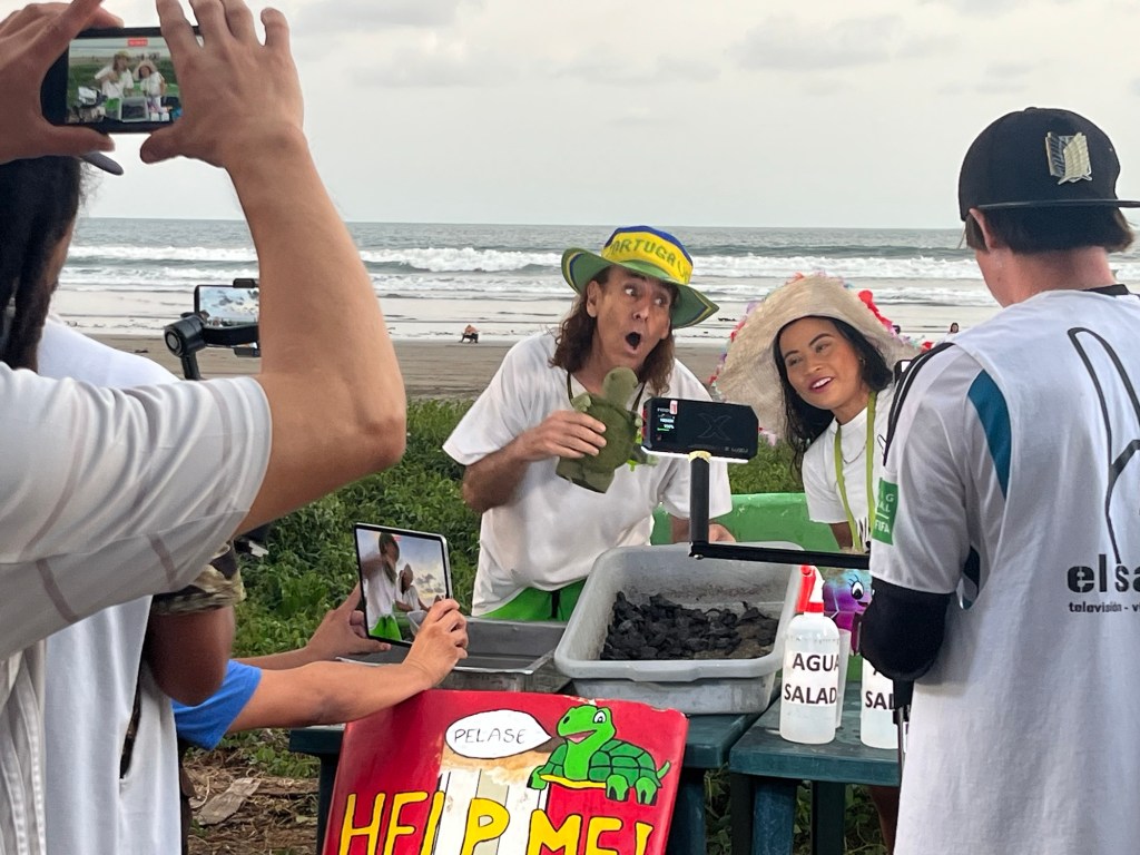 They’re still filming this TV show and there’s still no words to describe it other than wacky. The girl comes down the line of us asking where we are from, so I am now a star on local El Salvador TV.