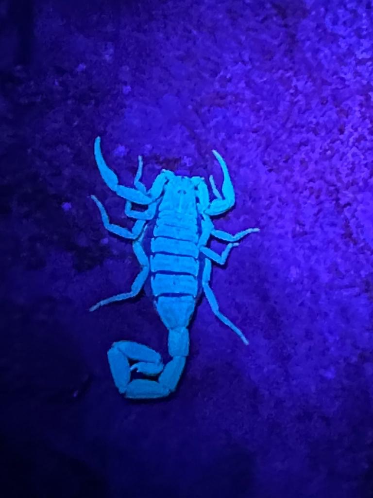 We leave the path, and trek through some tall grass to a tree where our guide finds this scorpion…and what’s cool is they also glow in certain light!